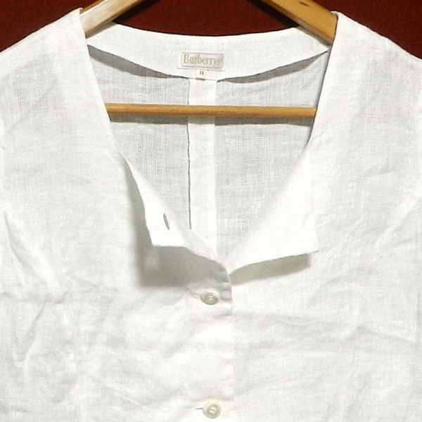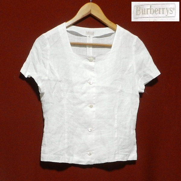 Burberrys バーバリー 80's オールド ビンテージ ヘンリーネック 花柄生地 麻 リネン 半袖シャツ カットシー ブラウスシャツ 11号 / L 美品