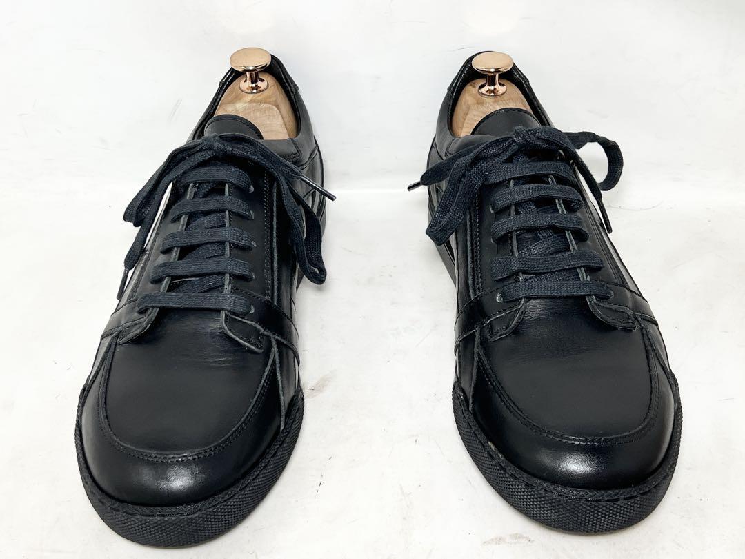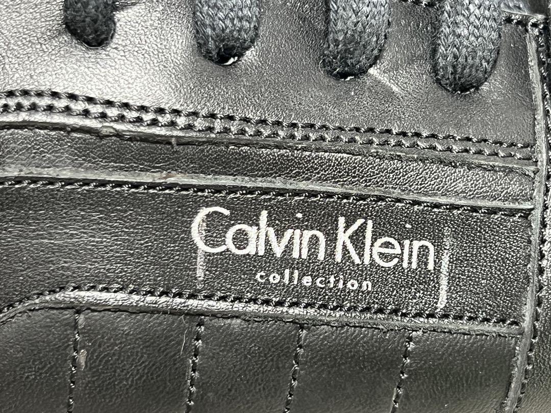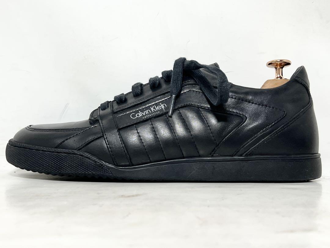 即決★美品 Calvin Klein★41=約26cm レザースニーカー カルバンクライン 黒 ブラック シューズ