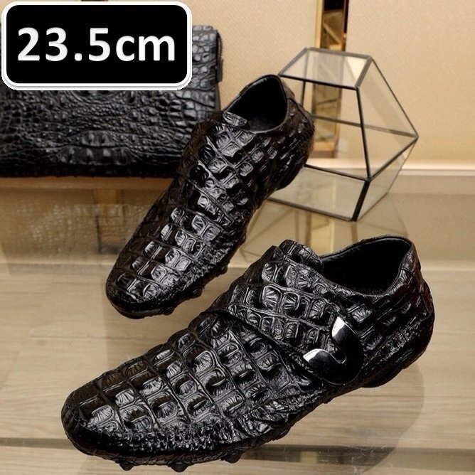 ☆最高級 クロコダイル 紳士 ビジネスシューズ ブラック 23.5cm ワニ革 靴 メンズ 総本革 ラウンドヘッド レザーシューズ 【194】