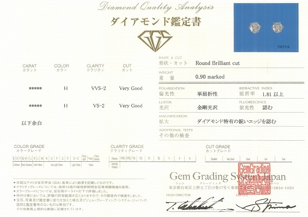PT900 ピアス ダイヤ 計0.90 VVS2 VS2 鑑定書 総重量約1.3g 中古 美品 送料無料 | |