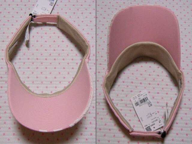 本体は軽量ポリエステル、ポリウレタン素材。  表面は吸水性のあるサラッとしたプリント生地で、スベリ部は吸汗速乾機能と防汚機能を持ち合わせた素材を使用したゴルフ用高機能サンバイザー・キャップ。   @ つばにレースをあしらった女性らしいアイテム。   ビンかわ(スベリ部)にはファンデーションの汚れが落ちやすい素材を使用した女性に嬉しい機能付き。   表記カラー  PK00 (薄めのピンク色)