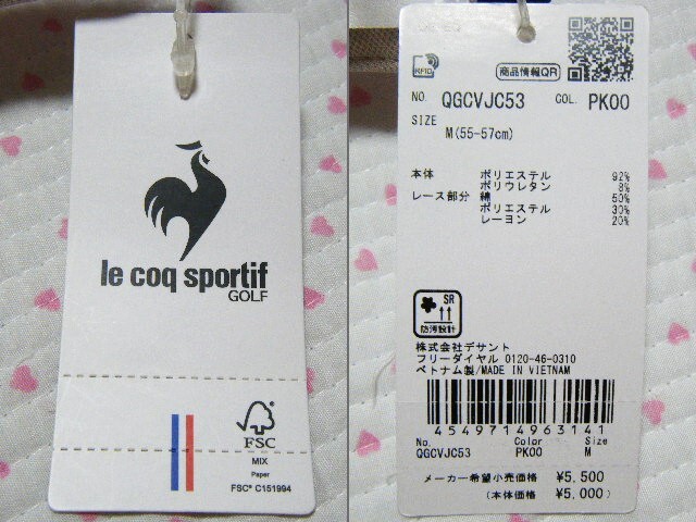 ルコック lecoqsportif RIJOUME ゴルフ用高機能サンバイザー ピンク色 サイズ M ツバ部レース切替 吸汗速乾/防汚機能 定価 5,500円