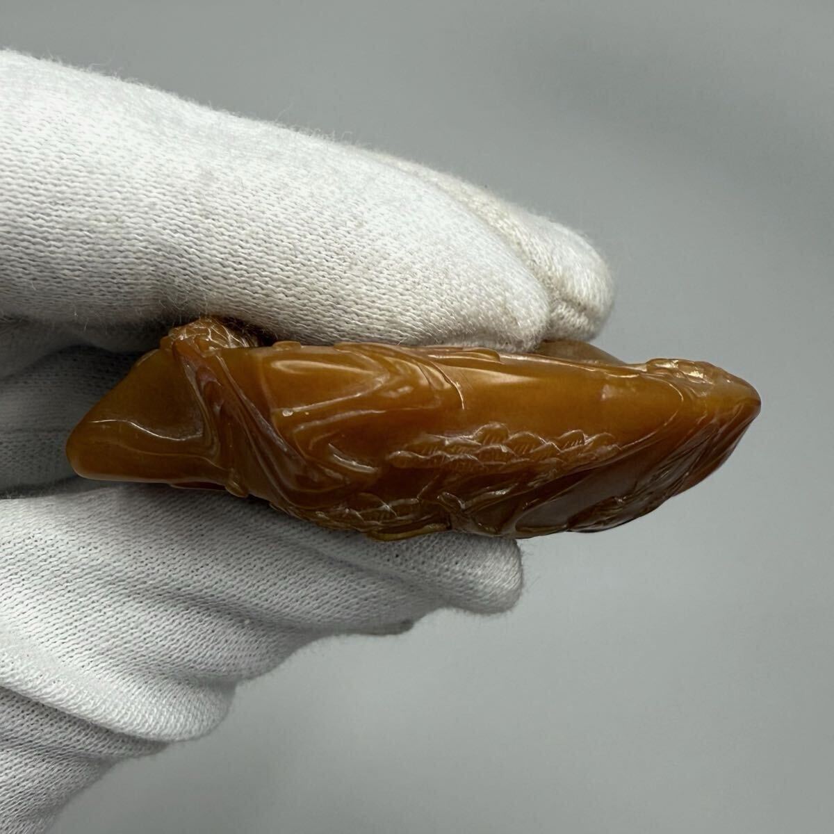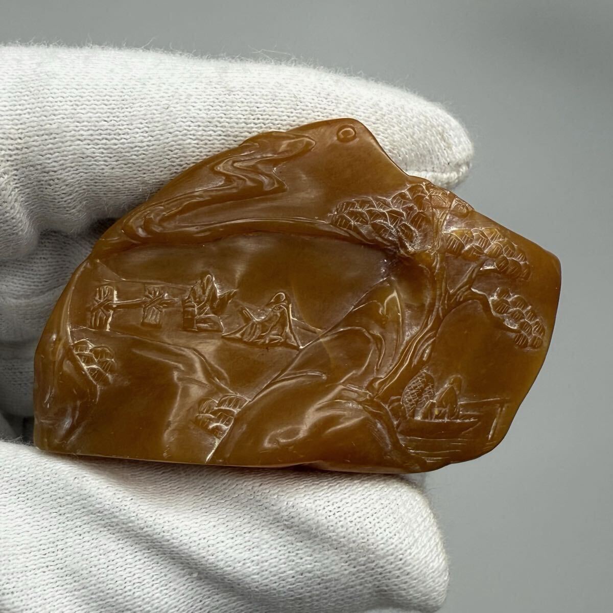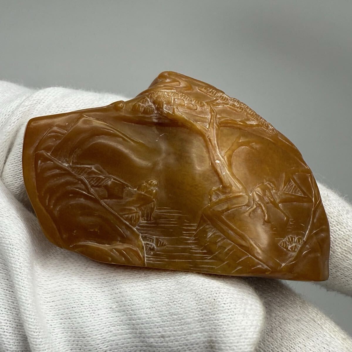 | 中国古美術 時代物 篆刻 寿山石 田黄石 彫刻 山水図 書道 印材 印章 印鑑 文房具 共箱付 唐物 中国古玩 骨董品 5.2×1.5×3.3cm 重さ31g |