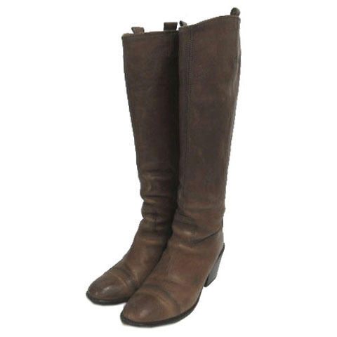 ラボキゴシワークス RABOKIGOSHI works ロングブーツ バックジップ ユーズド加工 レザー 日本製 ブラウン 茶 23 レディース