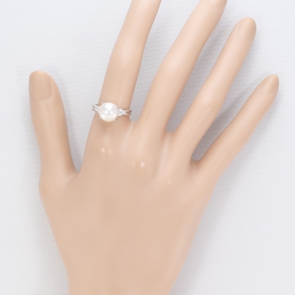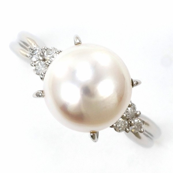 PT900 リング 指輪 11.5号 パール(真珠) 約9mm ダイヤ 0.12 総重量約4.6g 中古 美品 送料無料 | |