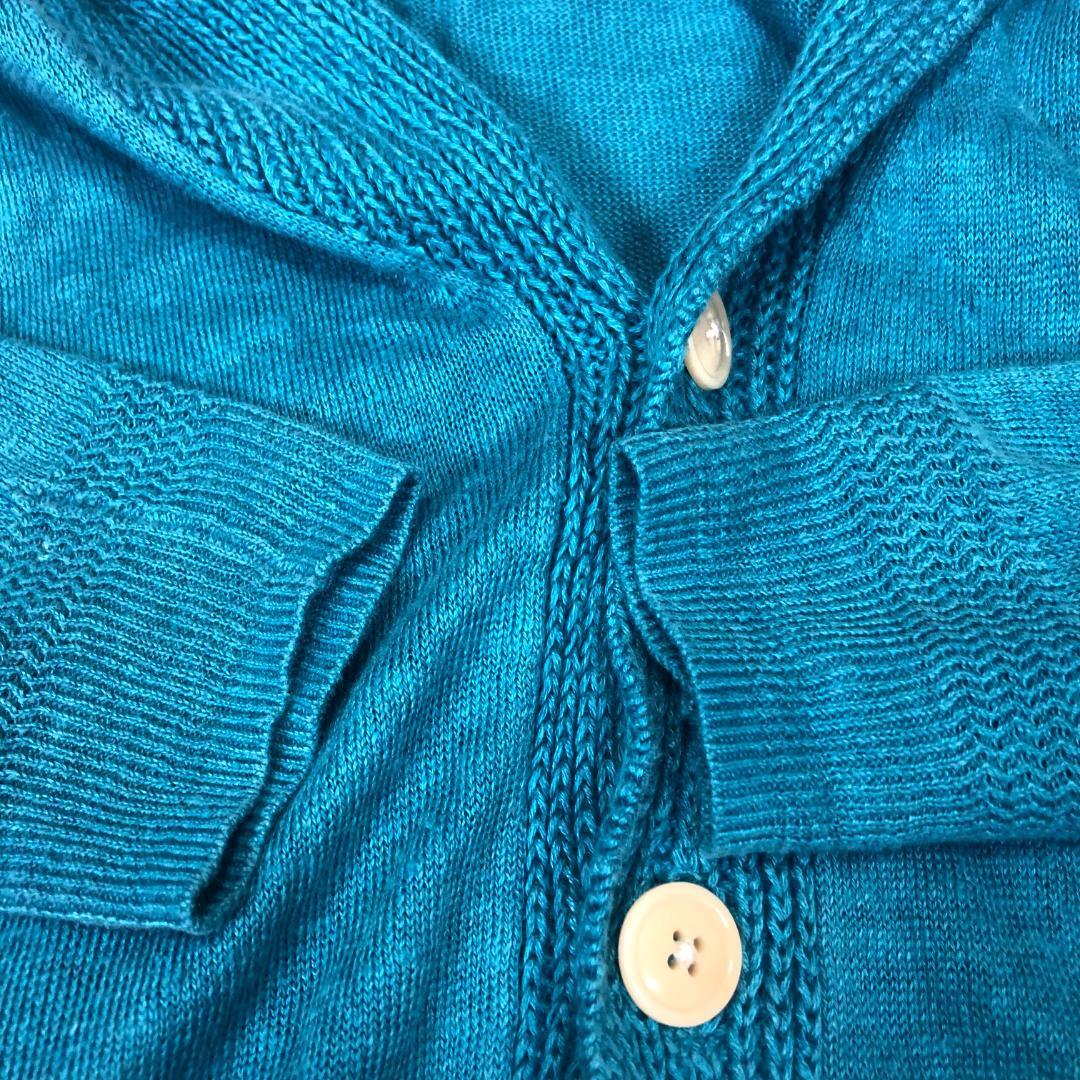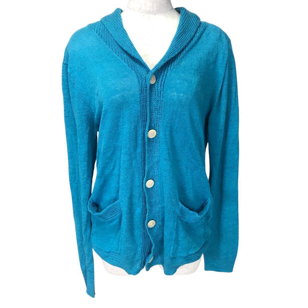 【麻100%】ビームス BEAMS カーディガン ターコイズブルー Mサイズ