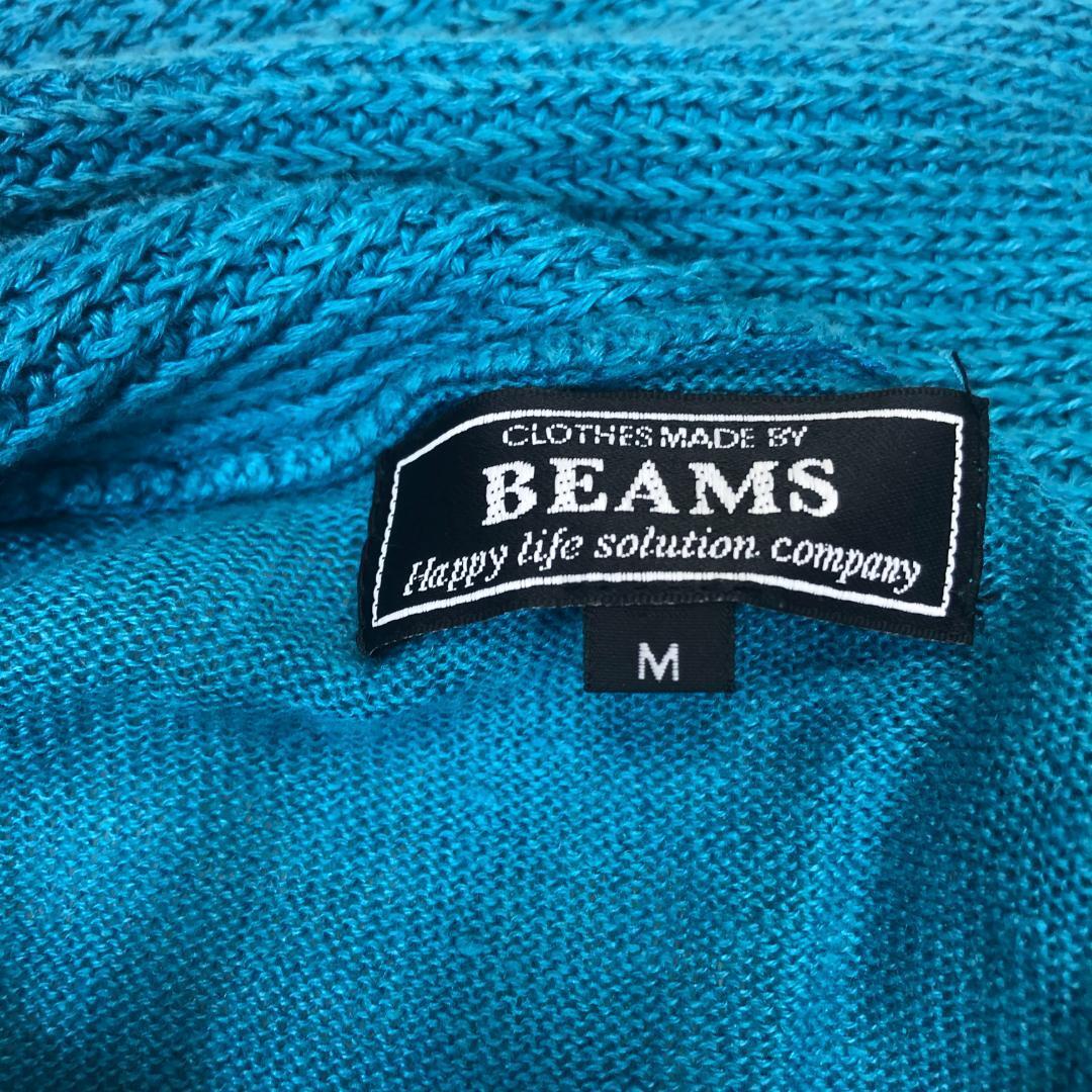 【麻100%】ビームス BEAMS カーディガン ターコイズブルー M