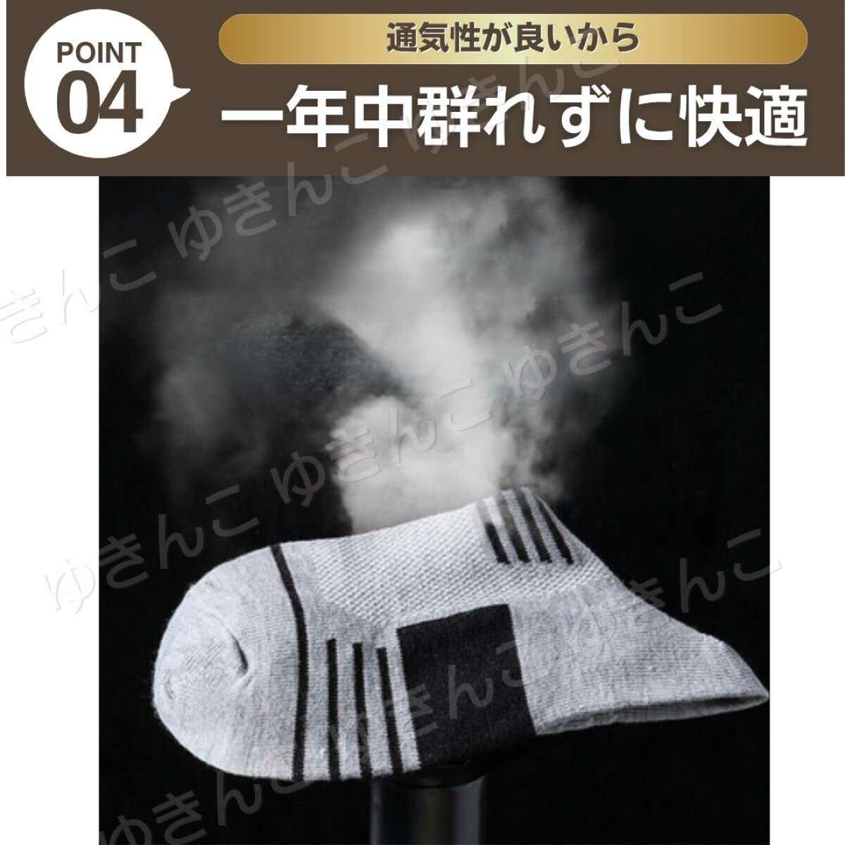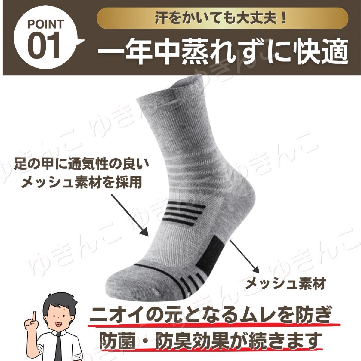 高品質な綿素材を使用しており、肌に優しく快適な履き心地を実現。吸水速乾性、抗菌防臭加工、メッシュ構造により通気性が良く、足元を清潔に保ち臭いを防ぎます。長時間の運動や立ち仕事にも最適です。
