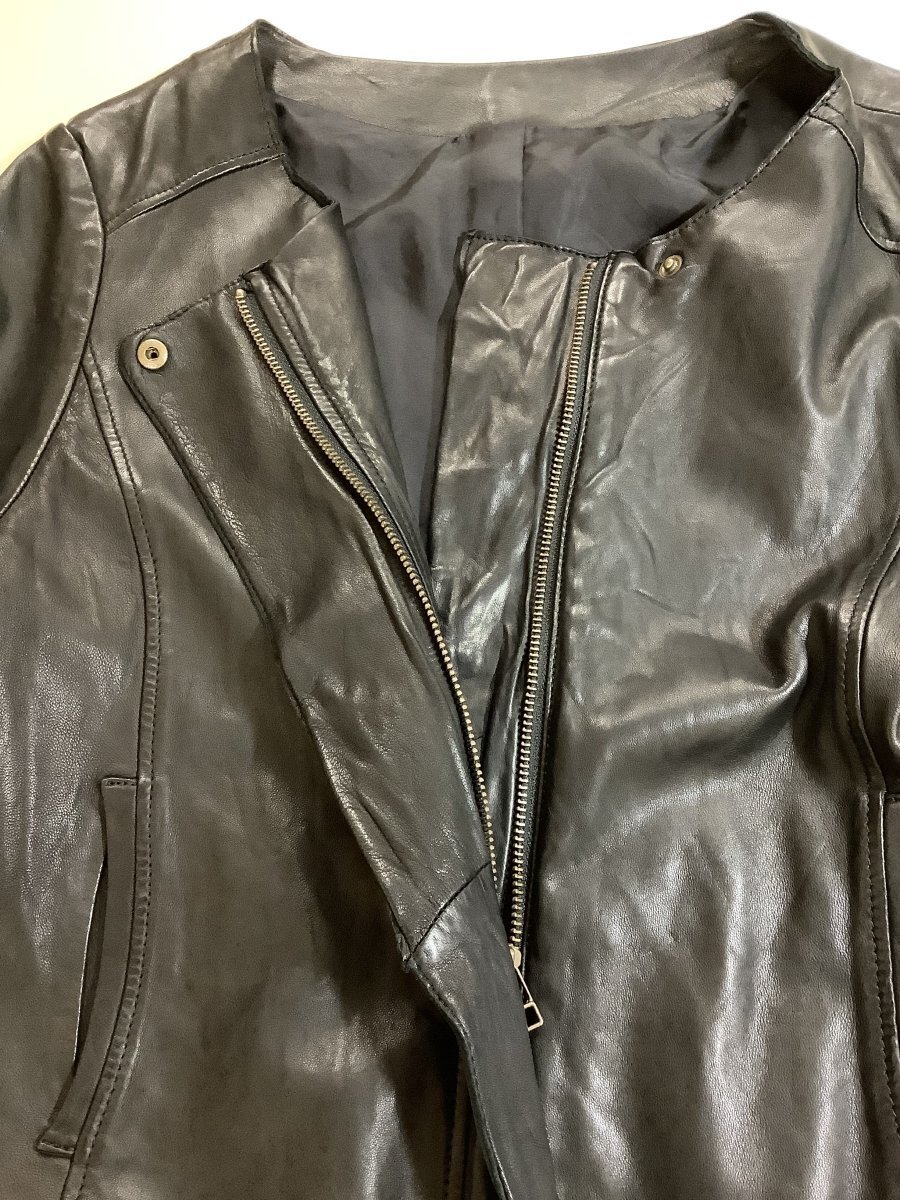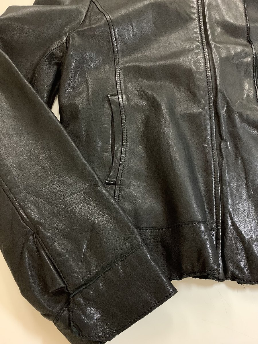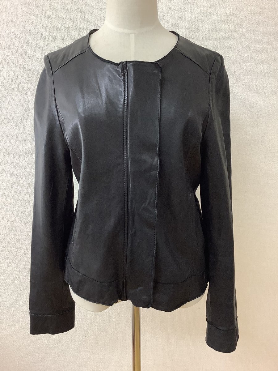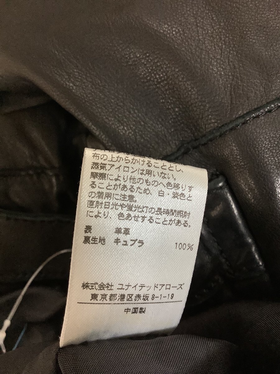 管理番号:137254 ユナイテッドアローズ 黒 羊革 ライダースジャケット 表示サイズ:40 実寸(参考)