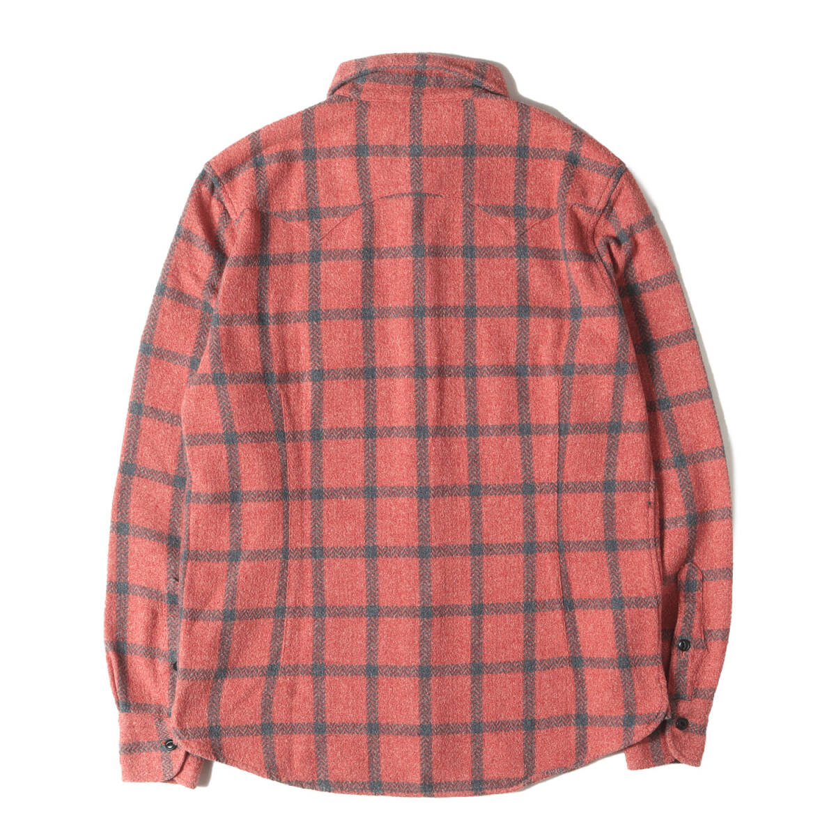 | 【ブランド名】TMT(ティーエムティー) 【リリース時期】2021年秋冬 【正式タイトル】WOOLY HERRINGBONE PLAID SHIRTS 【品番】TSH-F2104 【素材】コットン50% ポリエステル50% 【商品説明】 起毛感のある厚手のヘリンボーン生地を使用したマチ付きのチェックシャツになります。 【カラー】レッド×チャコール 【サイズ】L 着丈約72cm(背中襟下から)×身幅約54cm(脇下から)×肩幅約45cm×袖丈約64cm(肩上から) 【状態】A.美中古 【付属品】なし ![]() ※色がある場合、モニターの発色の具合によって実際のものと色が異なる場合があります。 お問い合わせに関しましてはメールのみでのご対応とさせていただいておりますのでご了承下さいませ。 |