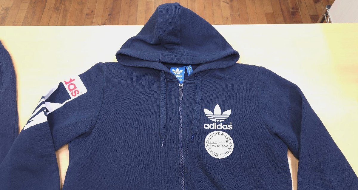 良品 アディダス トレフォイユ スウェット ジップアップパーカー + パンツ セットアップ 紺/ネイビー US/M J/Oサイズ