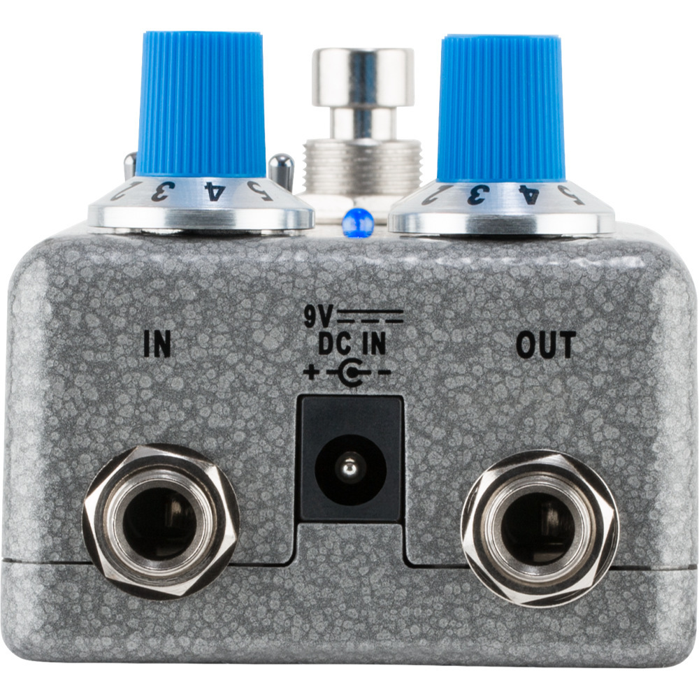 堅牢度の高いシルバーの 4.375\” × 2.375\” × 1.25\”サイズの筐体にはペダルボード上での使用を想定し、インプット/アウトプットのジャックを上部にまとめるという工夫が成されています。