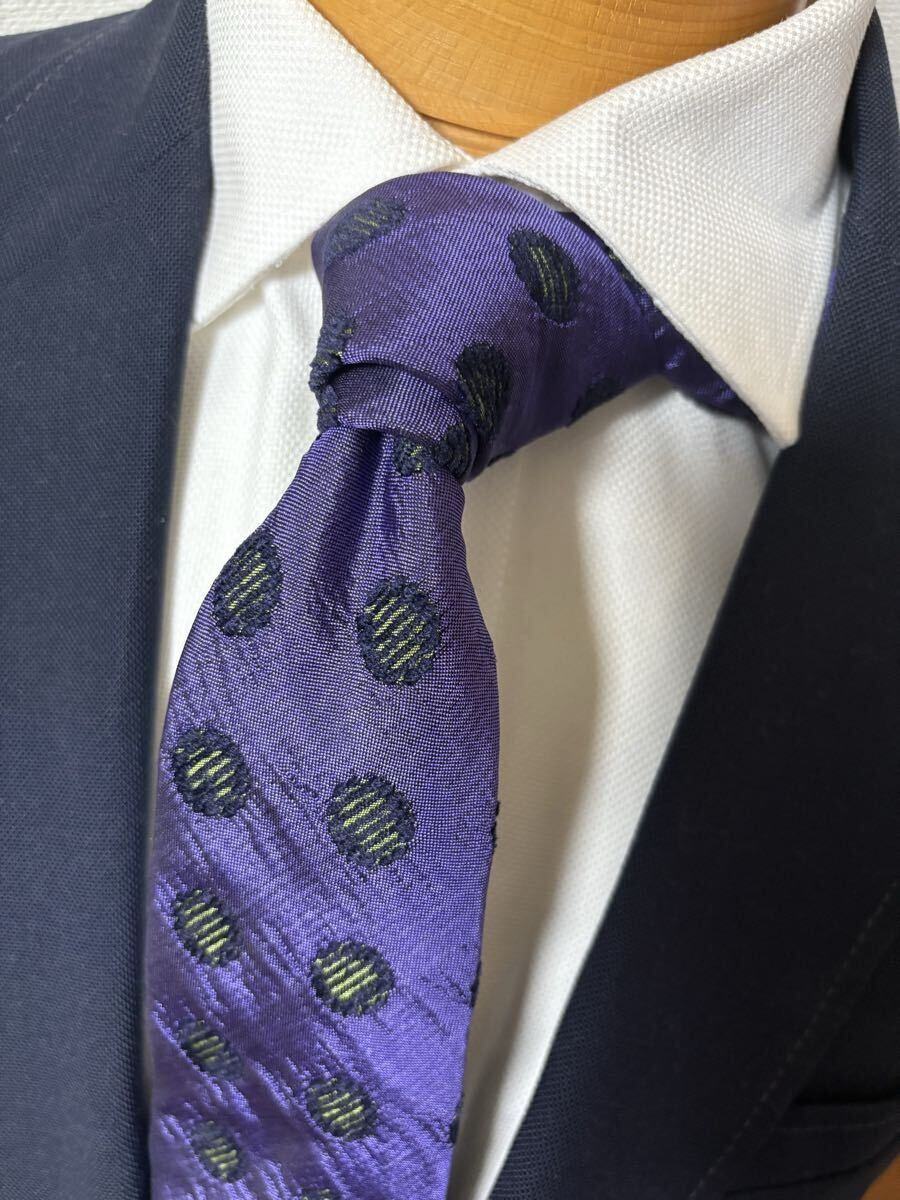 【美品】KEITA MARUYAMA ネクタイ高級シルク日本製 パープル基調大剣約8.5cm デザイナーズネクタイ