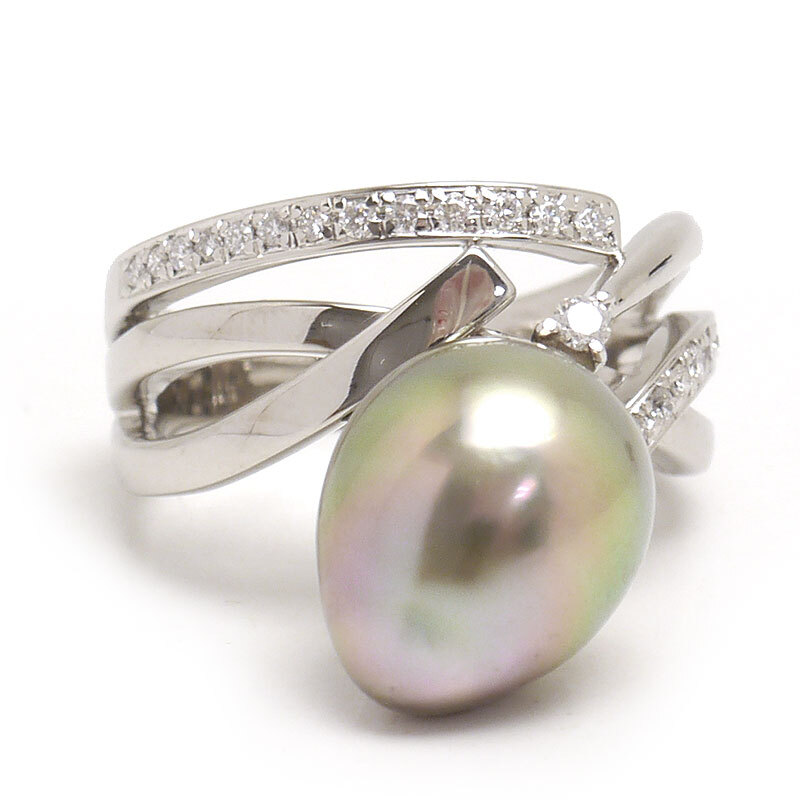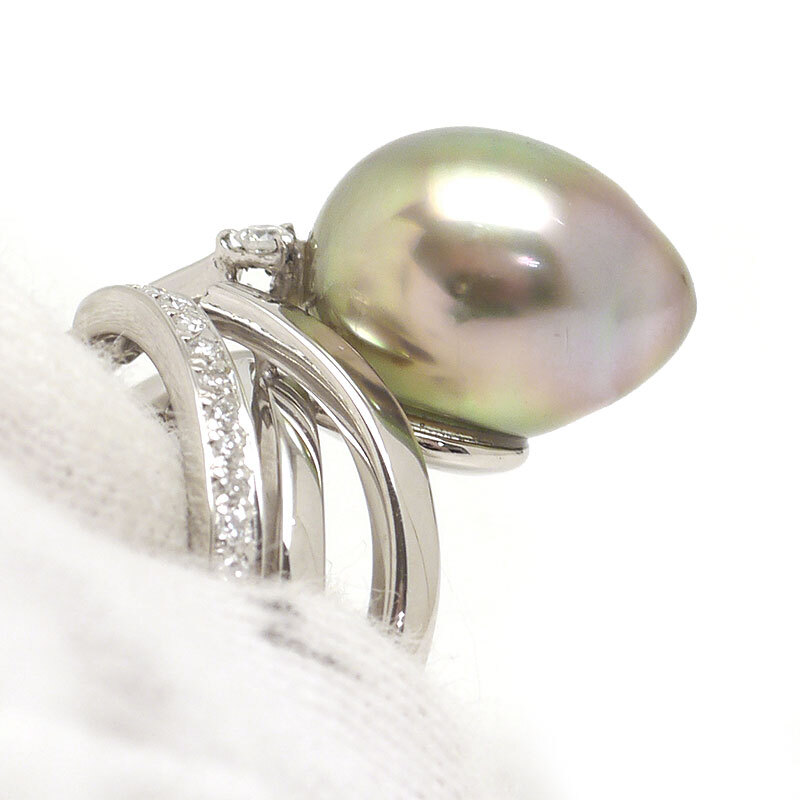 素材:PT900・クロチョウ養殖真珠10.3mm・ダイヤモンド0.19ct