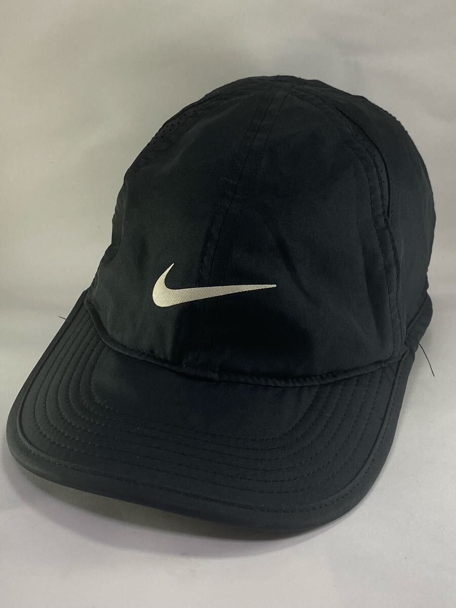 NIKE FEATHERLIGHT DRI-FIT キャップ ブラック 56cm S~M? スウッシュロゴ キャップ ランニング ナイキ アンストラクチャード 黒 帽子