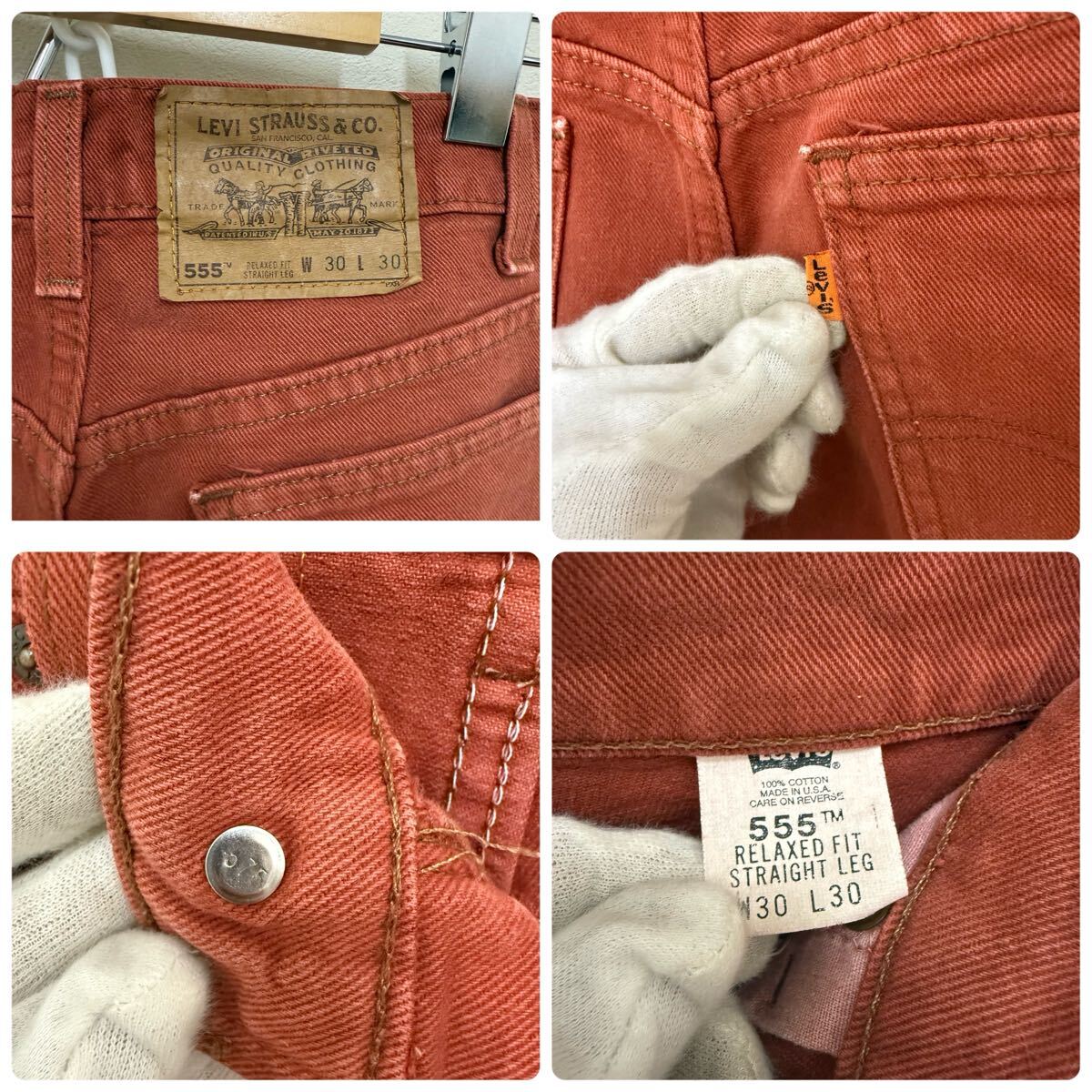 (33) Levi's 90s 555 パンツ コットン USA製 ボタン裏575 W30L30 レッド オレンジ メンズ リーバイス ズボン 古着 アメカジ アメ製