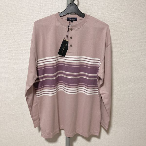 送料込み 未使用■グローベック GROSBEC/ヤマトインターナショナル■ボーダー ヘンリーネック 長袖Tシャツ/ロンT 日本製 5900円 メンズ L