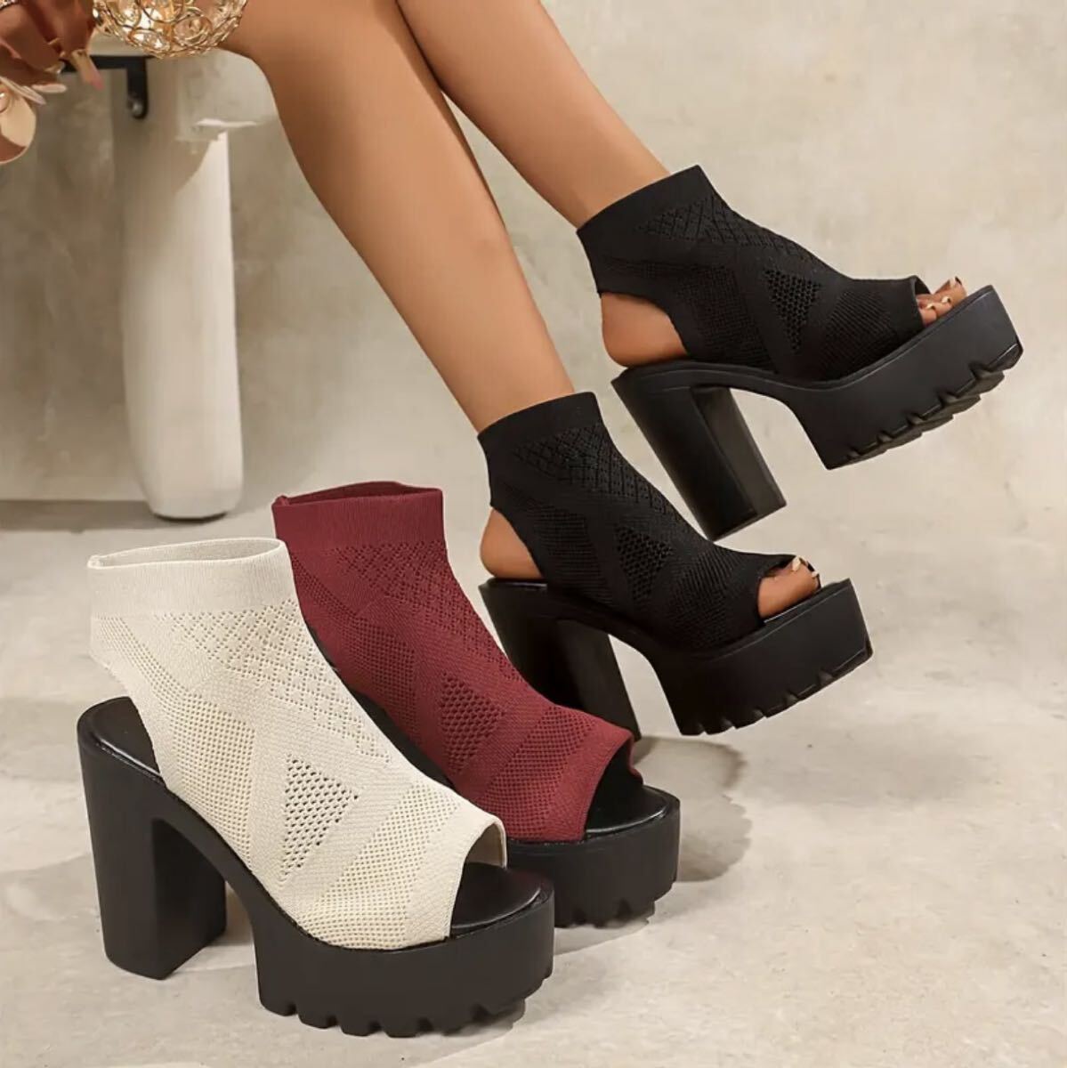 軽量ながら安定感のある厚底ヒールで、高さを感じさせない快適な歩行を実現。肌に馴染む柔らかい素材を使用し、長時間の着用でも疲れにくいのが特徴です。通気性の良いニット素材が蒸れを防ぎ、快適な履き心地を保ちます。