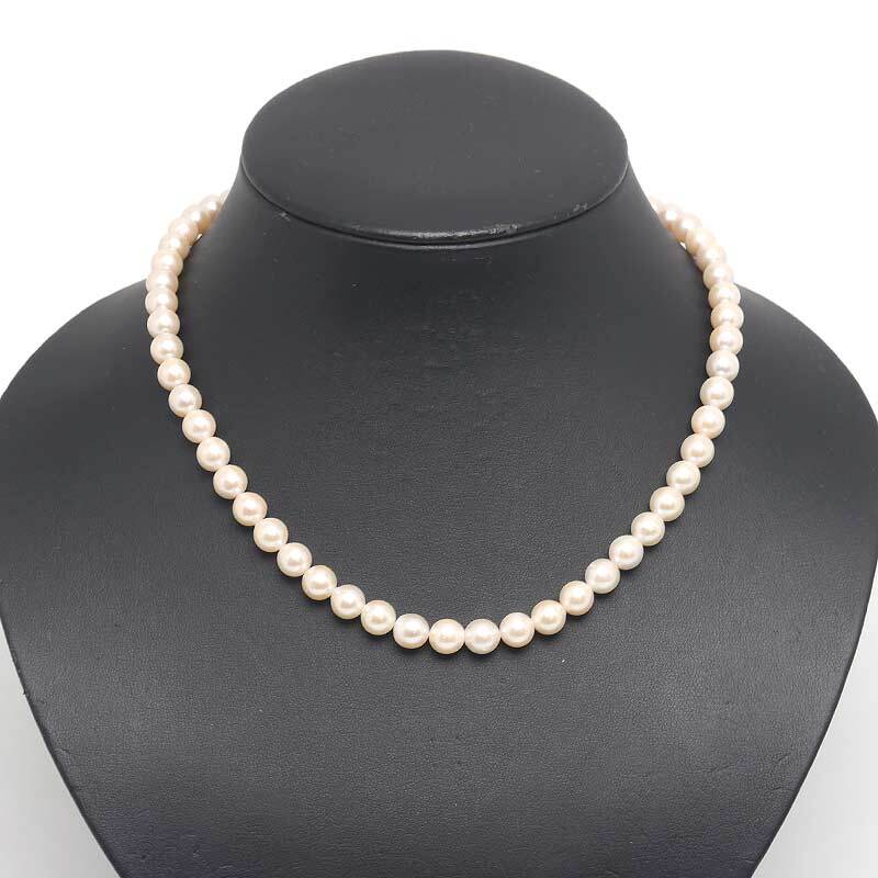 ・クリームがかったピンク系カラーです。干渉色はピンクとグリーンが混在しております。また、形状はセミラウンド~セミバロック程度です。クラスプ交換済みの美品となります。