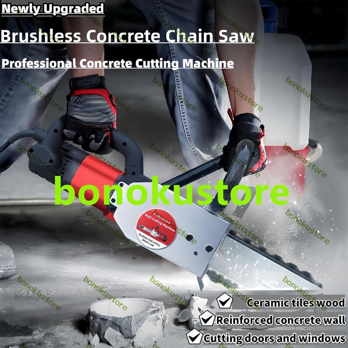 8800W 電動コンクリートソー、7500RPM ウォールチェイサー切断機、給水式ダスト抑制機能付き、切断深度 35cm、3 分で 2m 切断、コンクリート、レンガ、大理石用ブラシレスコンクリートソー