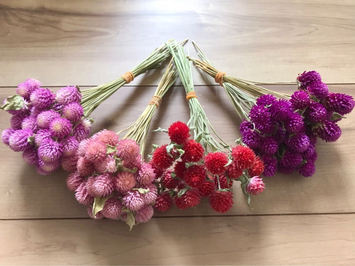 毎回ご好評いただいております千日紅のドライフラワーです。