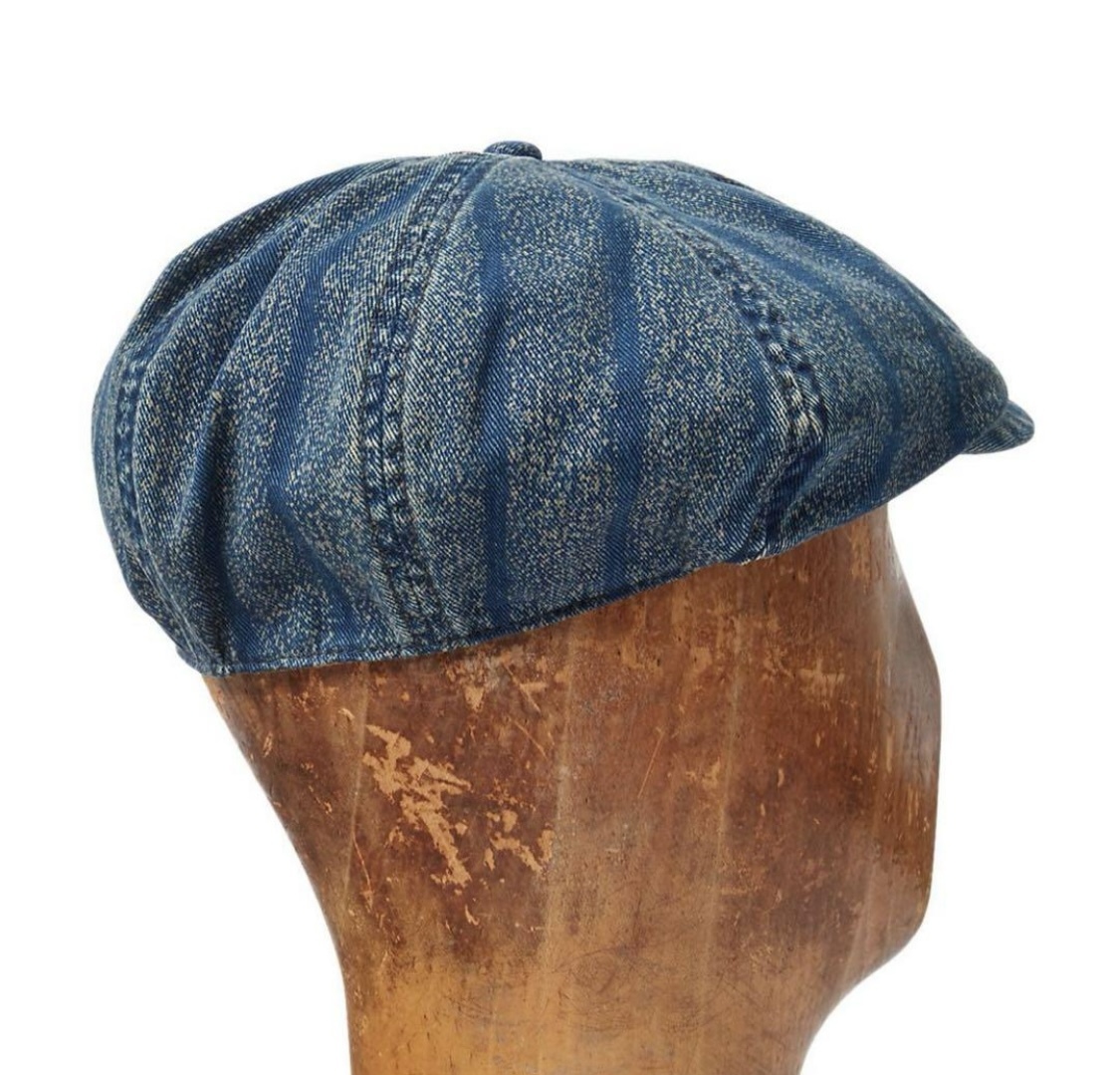 新品*RRL*インディゴ ストライプド ツイル ニュースボーイ キャップ *M