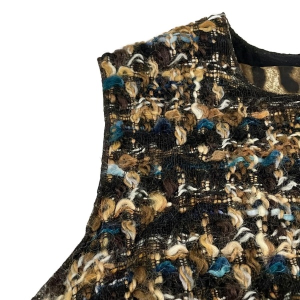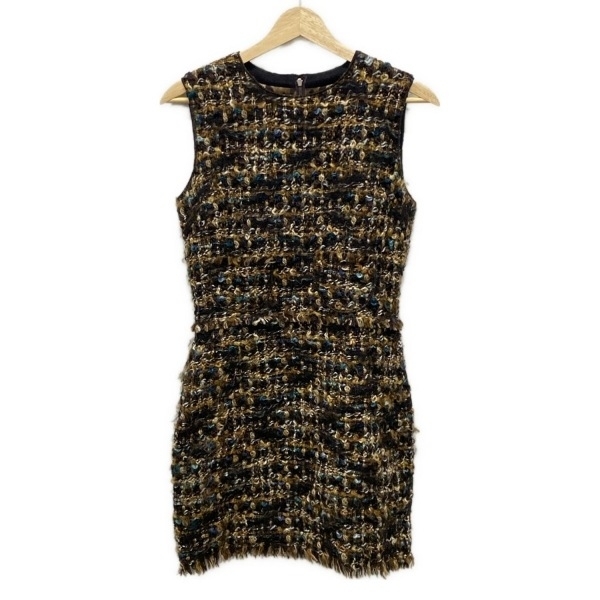 ドルチェアンドガッバーナ DOLCE&GABBANA サイズ42 M - ダークブラウン×ベージュ×マルチ レディース ノースリーブ/ひざ丈/ツイード 美品