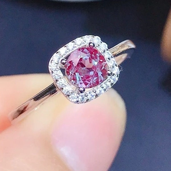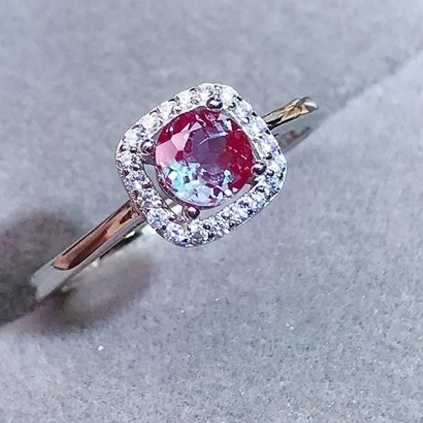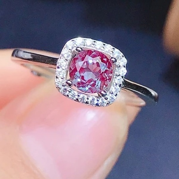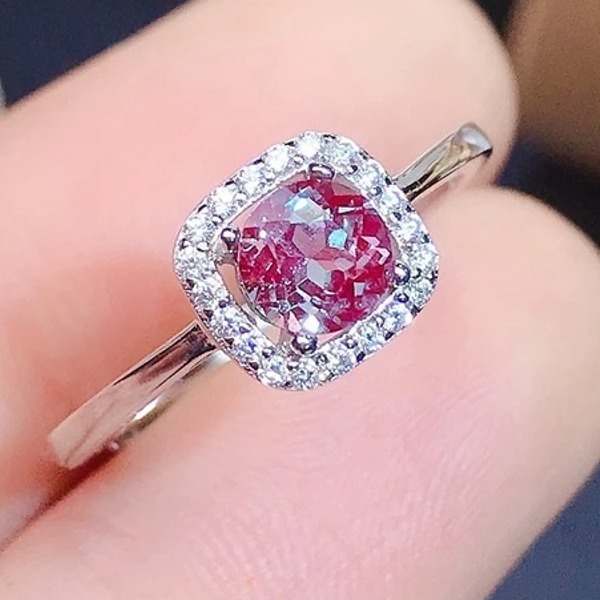 天然アレキサンドライト レディース リング 、925 スターリングシルバー 、プリンセススクエア、 新しいスタイルの推奨