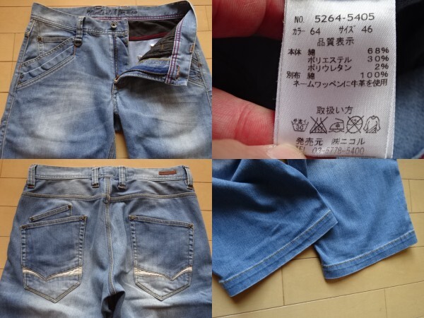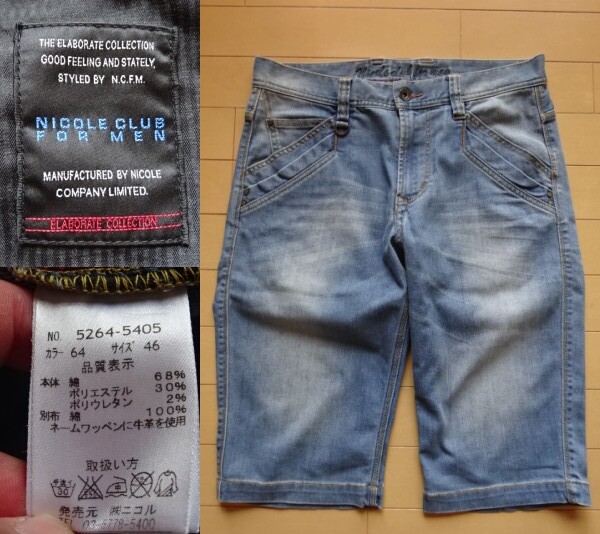 【NICOLE CLUB FOR MEN】ユーズド加工 ストレッチ デニムショートパンツ インディゴブルー SIZE:46 (ニコルクラブフォーメン,ショーツ)