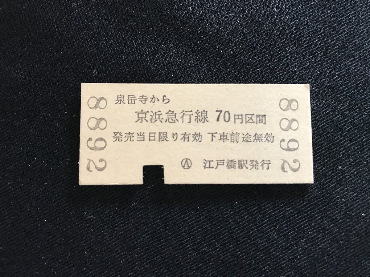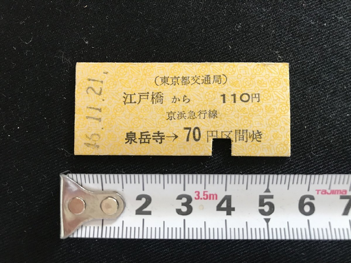 i☆* 古い切符 昭和46.11.21 江戸橋から110円 泉岳寺から京浜急行線70円区間 江戸橋駅発行 乗車券 硬券 下入鋏券 1点 72/C05