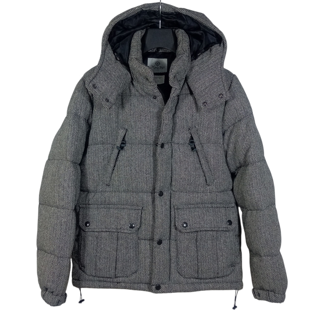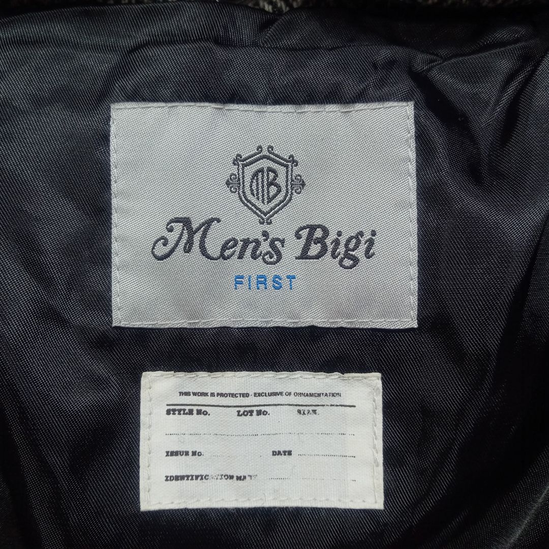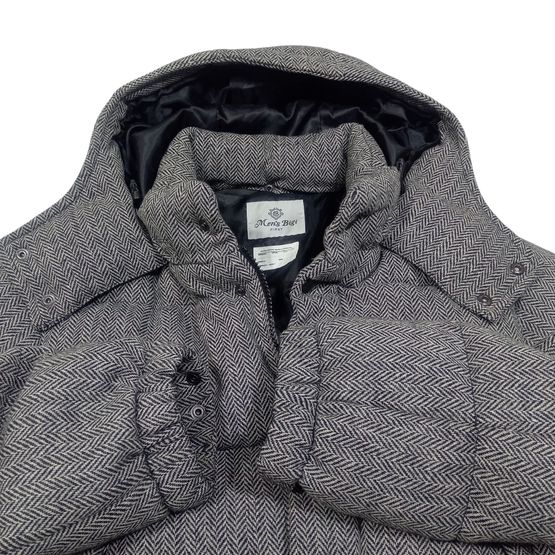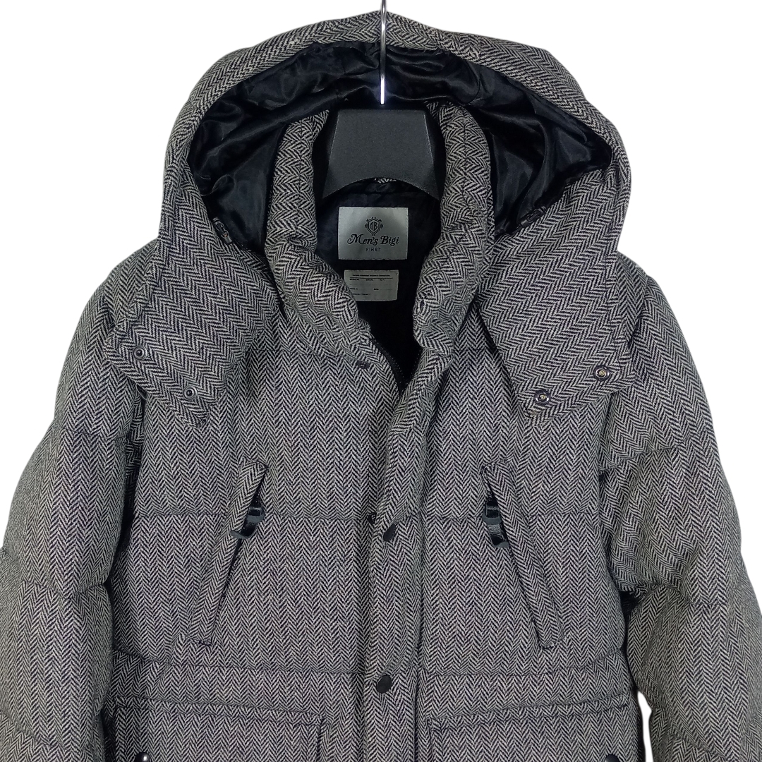 即決★美品 MENS'BIGI メンズビギ ヘリンボーン ツイード フーテッド ダウンジャケット 3グレー【送料無料】