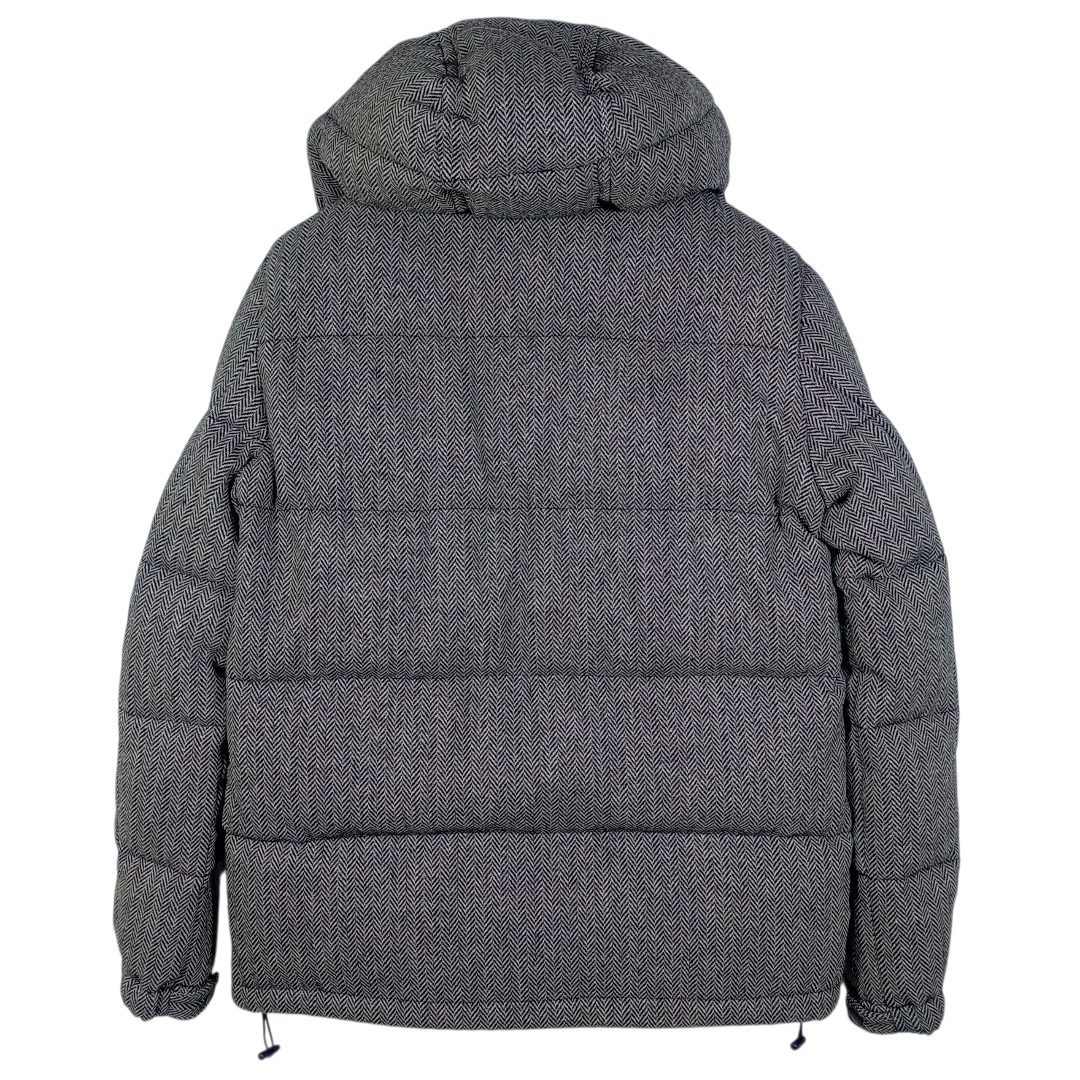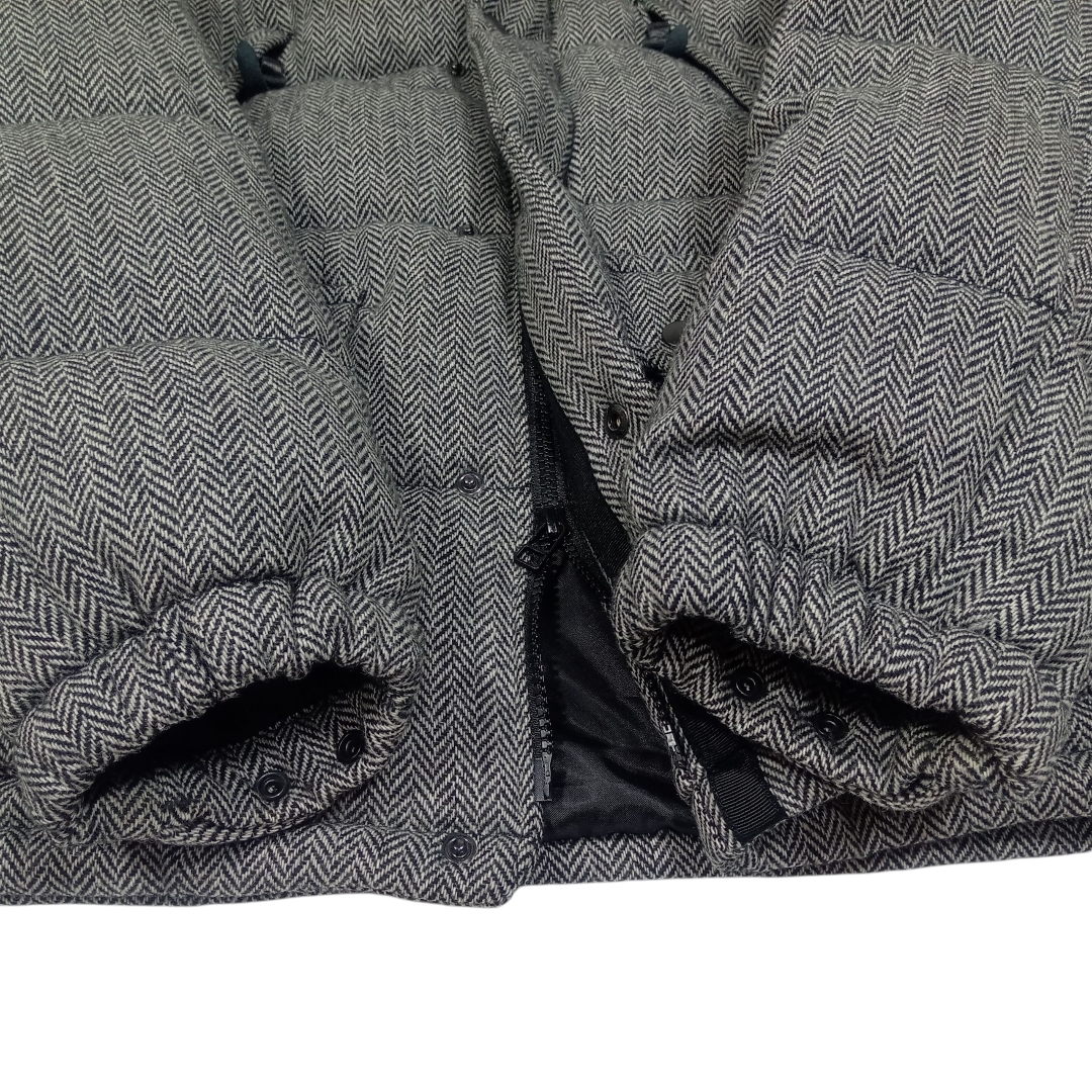 【美品 MENS'BIGI メンズビギ ヘリンボーン ツイード フーテッド ダウンジャケット 3グレー】