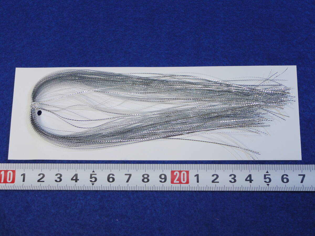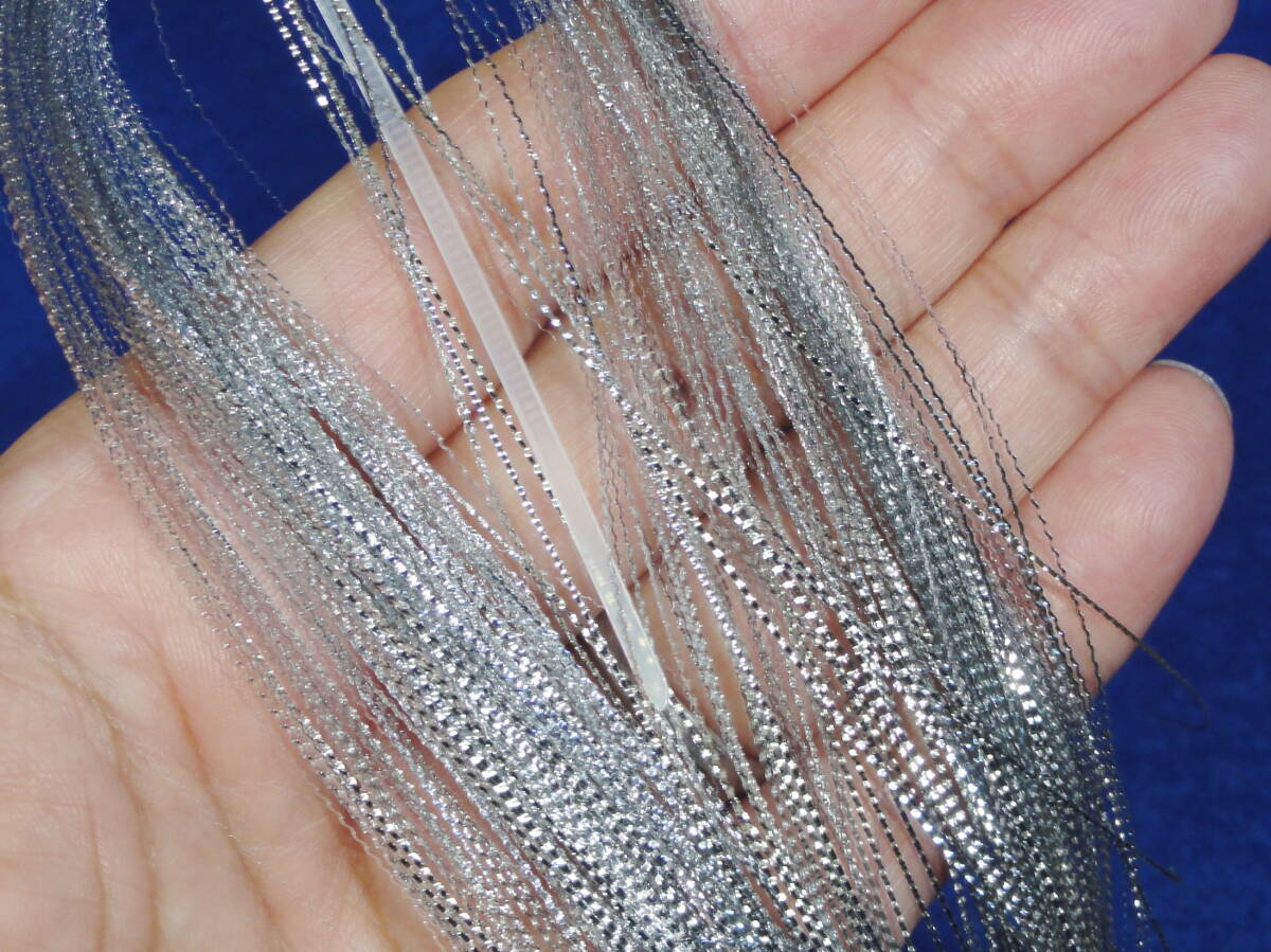 | ご覧頂きありがとうございます。 折り目加工が施されたフラッシャブーになります。 ラテラル(側線)に見たててストリーマーのウイングに追加することにより、 水中で乱反射します。 幅が0.5ミリなので、淡水用フライにも使用できます。 1パックに約140本入っています。 カラー:シルバー2個 パッケージの大きさ:21×6センチ マテリアルの長さ:約15センチ(2つ折りの状態で) ※同日落札のマテリアル商品に限り同梱発送致します。 | ||