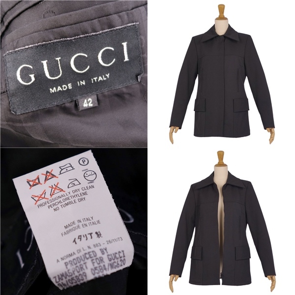 美品 グッチ GUCCI ジャケット トムフォード期 ジップアップ ナイロン アウター レディース イタリア製 42(L) ブラック |