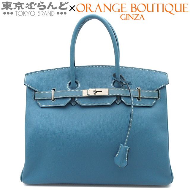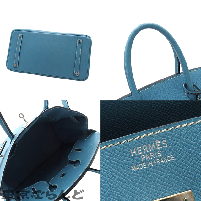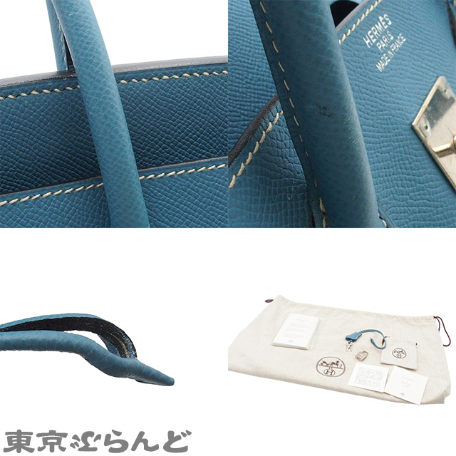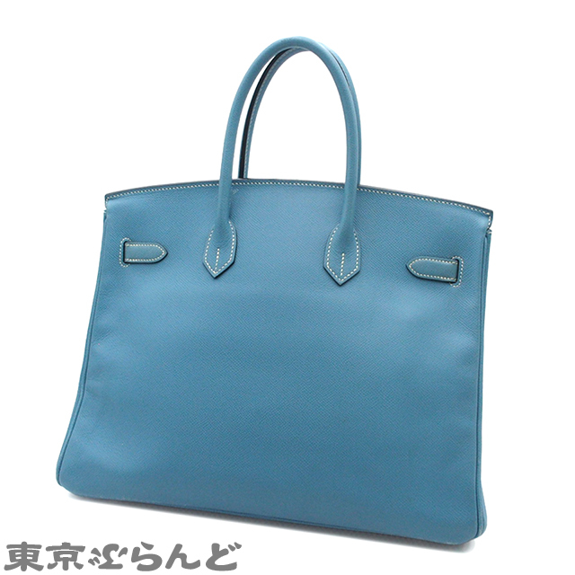 101819039 エルメス HERMES バーキン35 □K刻印 ブルージーン シルバー金具 エプソン ルトゥルネ ハンドバッグ レディース