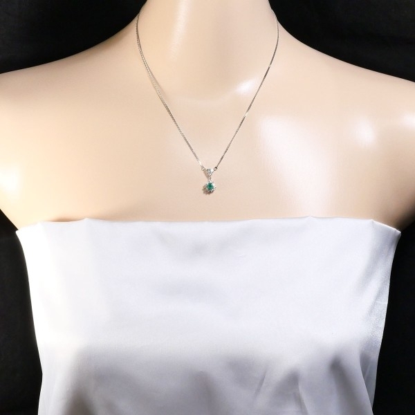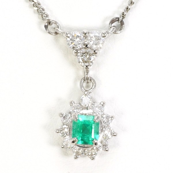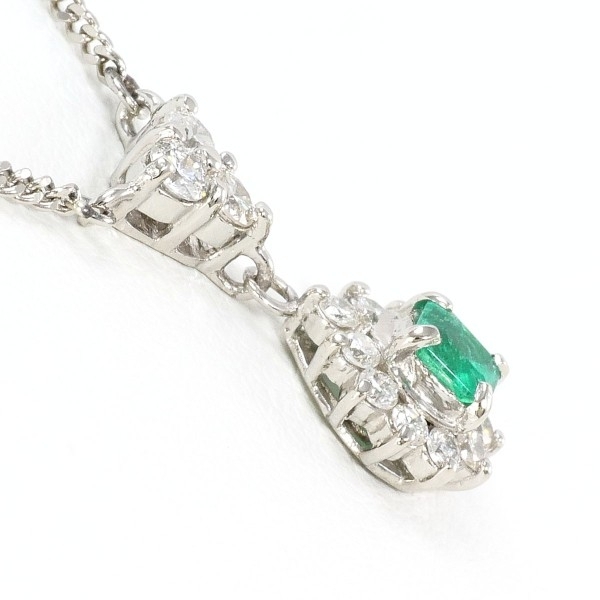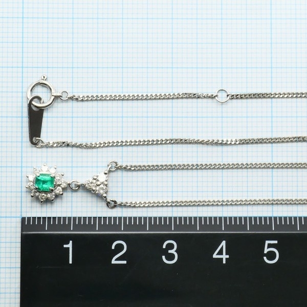 PT850 ネックレス エメラルド 0.20 ダイヤ 0.33 総重量約4.7g 約40cm 中古 美品 送料無料 | |
