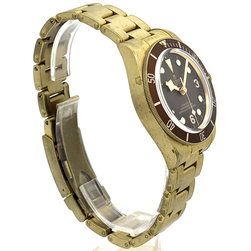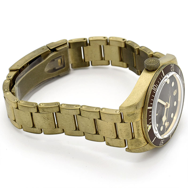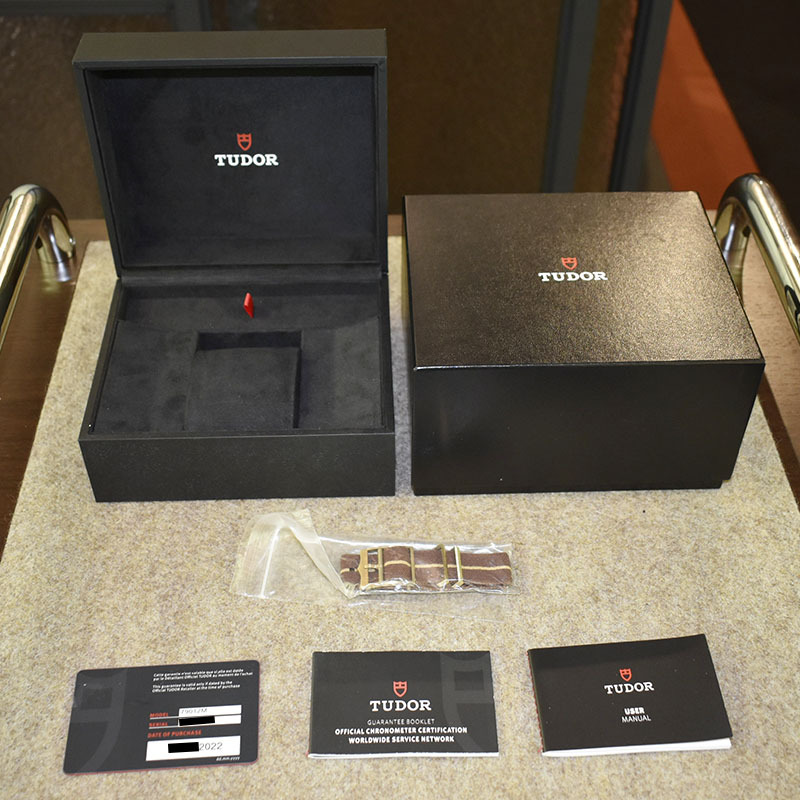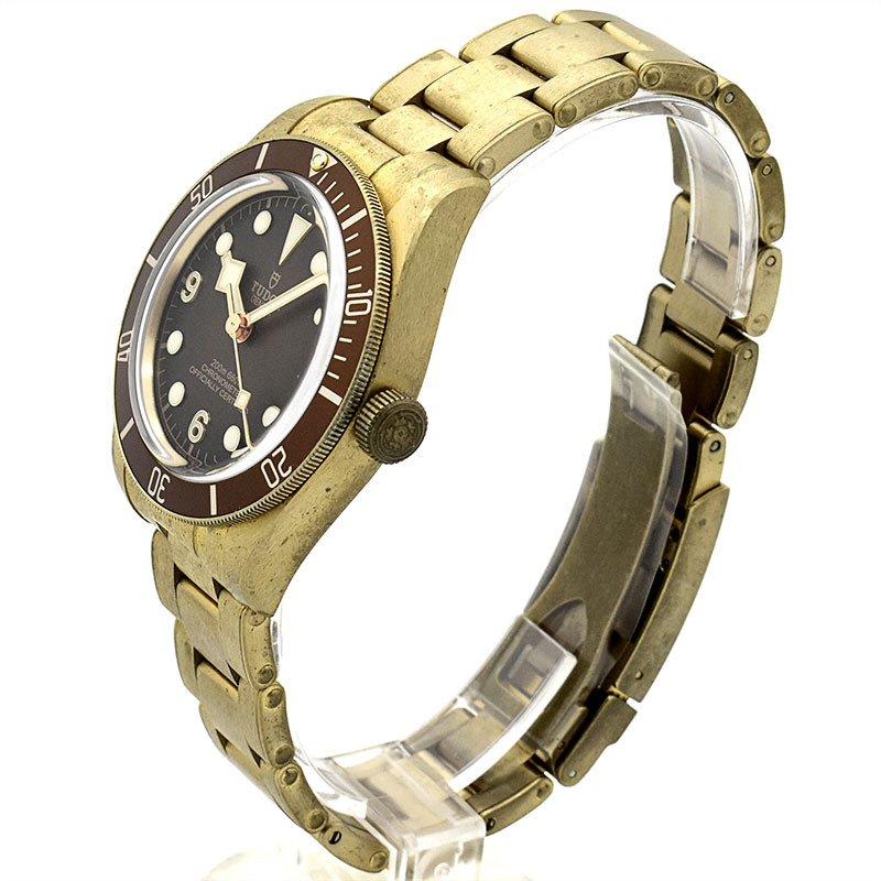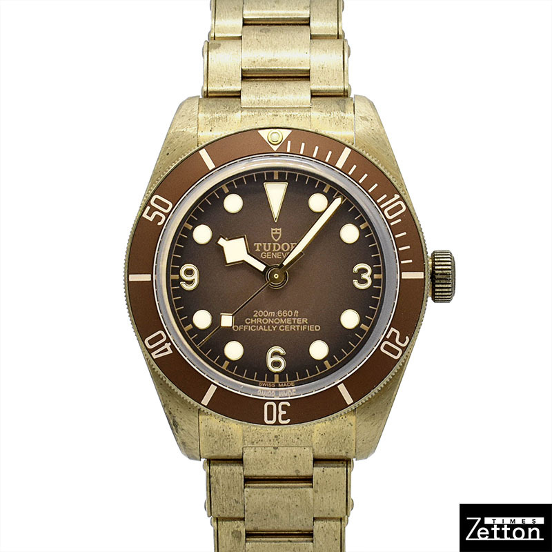 店長メモ | チューダーが1958年に発表した"サブマリーナ ビッグクラウン Ref.7924"からインスピレーションされたのが"ブラックベイ フィフティエイト"になります。 こちらはチューダー初のブティック限定モデルとして、ケースやリューズ、ブレスレットまでブロンズ製のブラックベイ フィフティエイトです。 ブラックベイを象徴するイカサブ針も採用したヴィンテージ感溢れるデザインながら、ムーブメントには自社製キャリバー"MT5400"を搭載しパワーリザーブは70時間を誇ります。 |