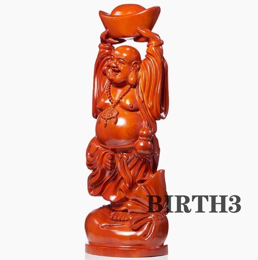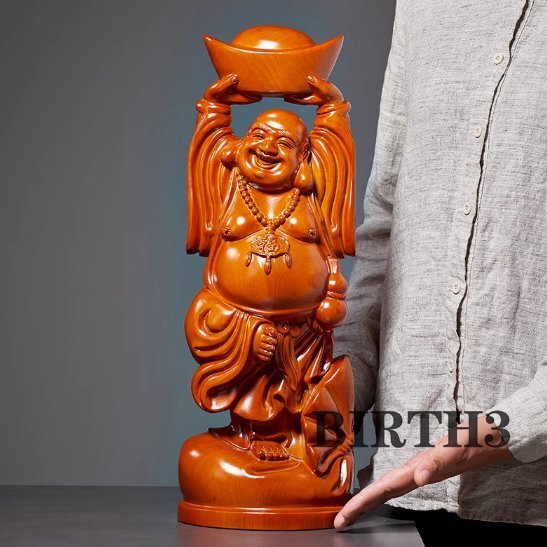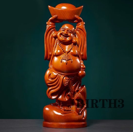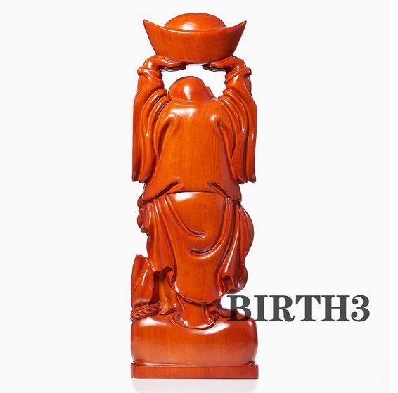 仏像 木彫り 七福神 布袋 様 布袋さんの置物 木像 木製フィギュア 花梨木 置物 金運 お守り高さ30cm