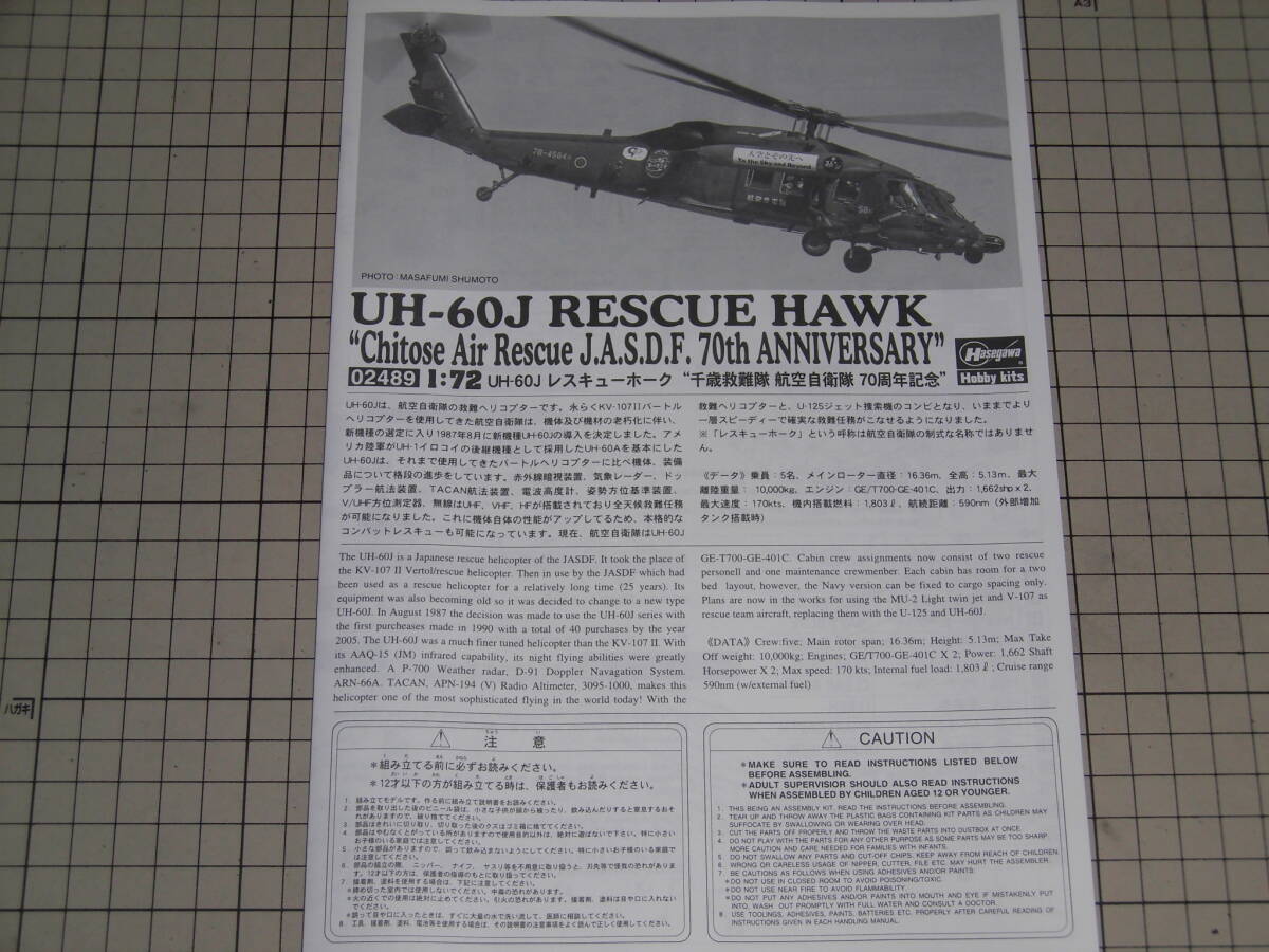 ハセガワ 1/24スケール限定品シリーズNO,02489 UH-60J レスキューホーク 千歳救難隊 航空自衛隊 70周年記念 未開封未組立品
