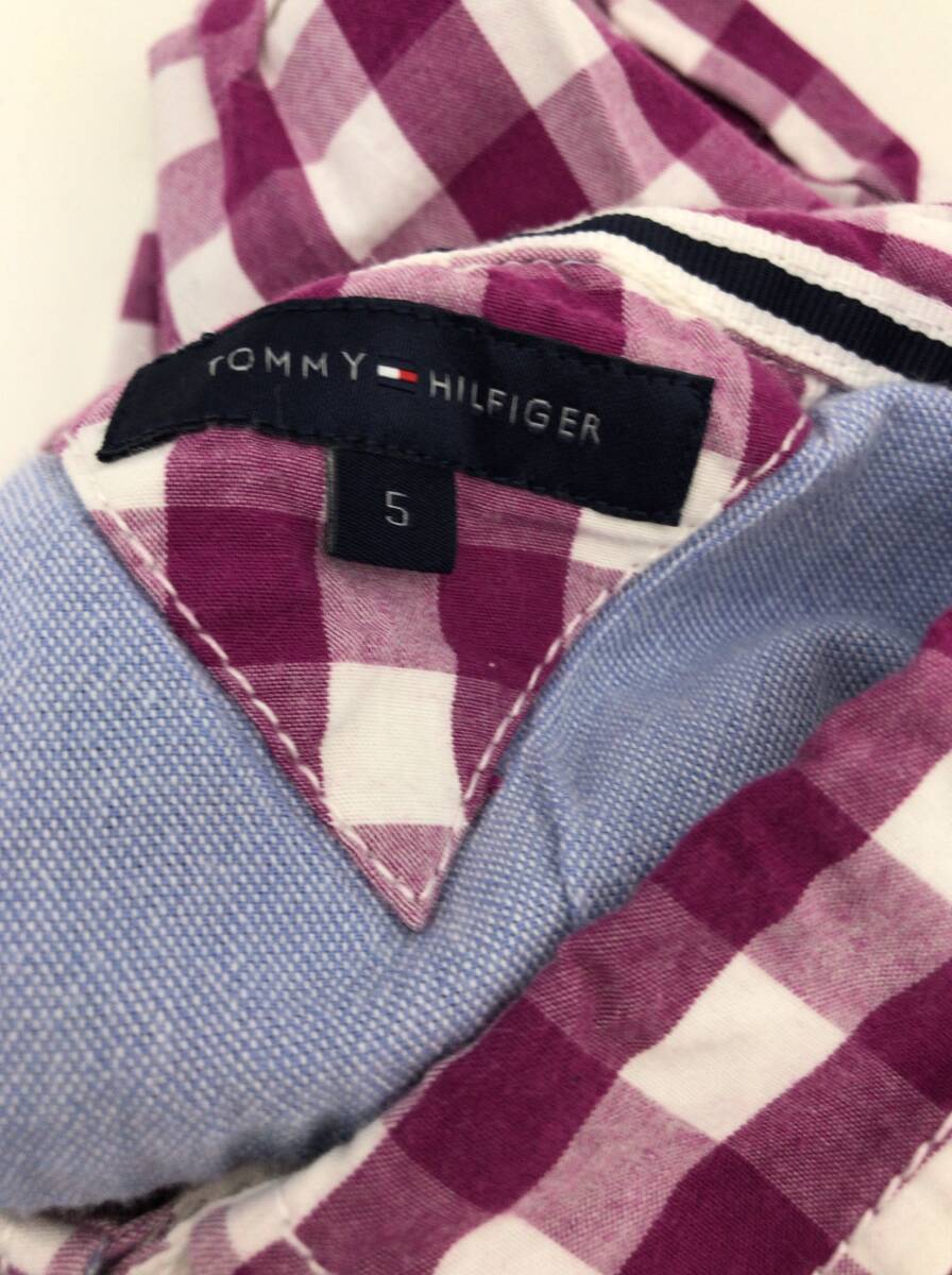 TOMMY HILFIGER 長袖 シャツ パープル ホワイト チェック柄 サイズ 5 キッズ 子ども 男の子 トミーヒルフィガー E5