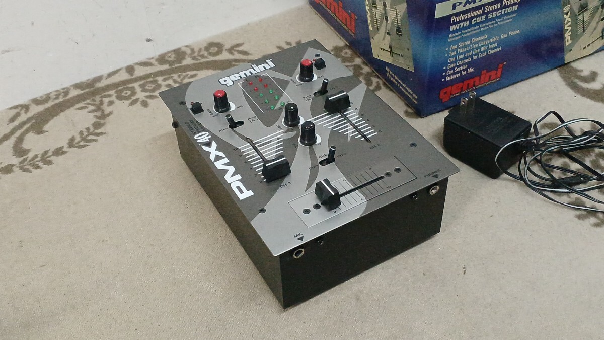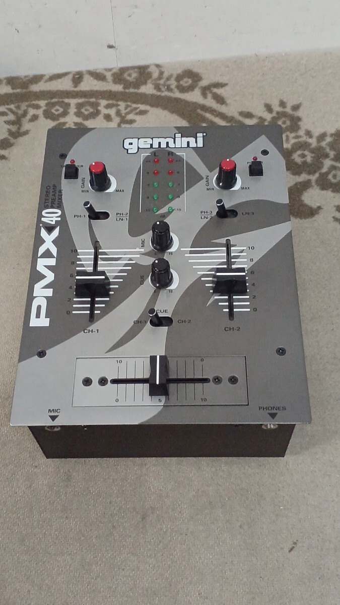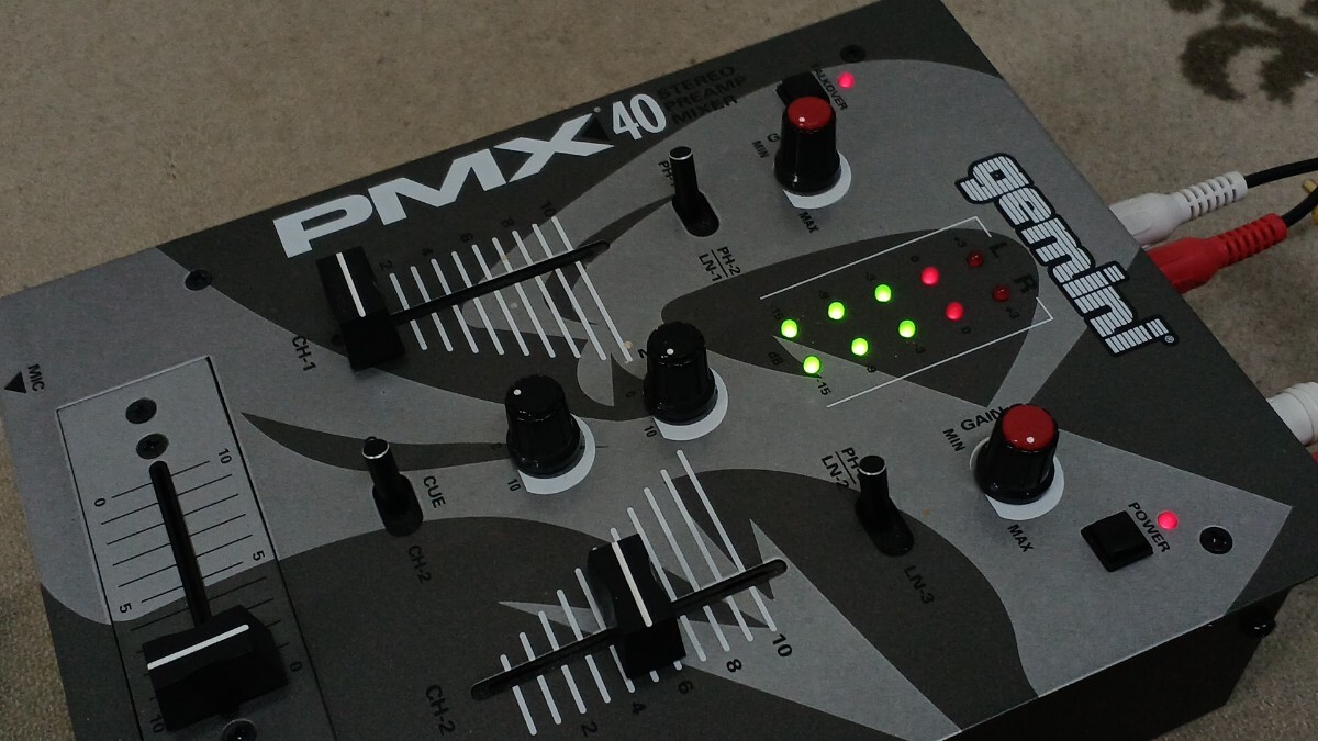 2チャンネル方式の音響ミキサーのようです。調べたところDJミキサーと呼ばれるものらしいですが具体的な仕様や詳細は不明となります。