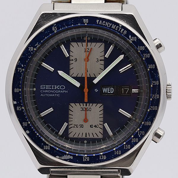 デッドストック級 稼働 良品 セイコー AT/自動巻 6138-0030 スピードタイマー クロノ 青文字盤 デイデイト メンズ腕時計 888ABC0156800IKE
