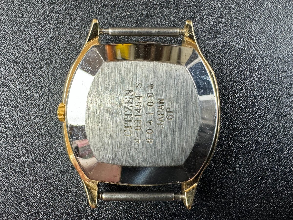 | 【諸 元】 | 型 番: 4-831454S 寸 法:【横】29mm(竜頭含まず)×【縦】32mm×【厚】8mm ※寸法はノギスで測定してますが1mm以下の端数は四捨五入した寸法で記入してます。駆動方式: クォーツ 材 質: ステンレス 製造年月日: 不 明 |