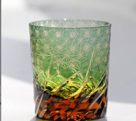 人気 高級グラス 切子 波が星に注ぐ 冷酒杯 手作りワインセット ロックグラス ビールウイスキーグラス 250ml緑