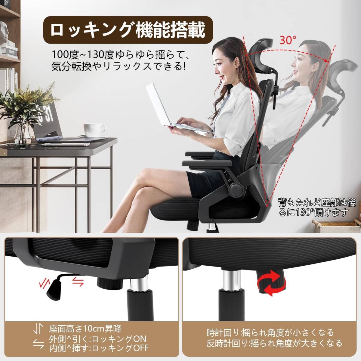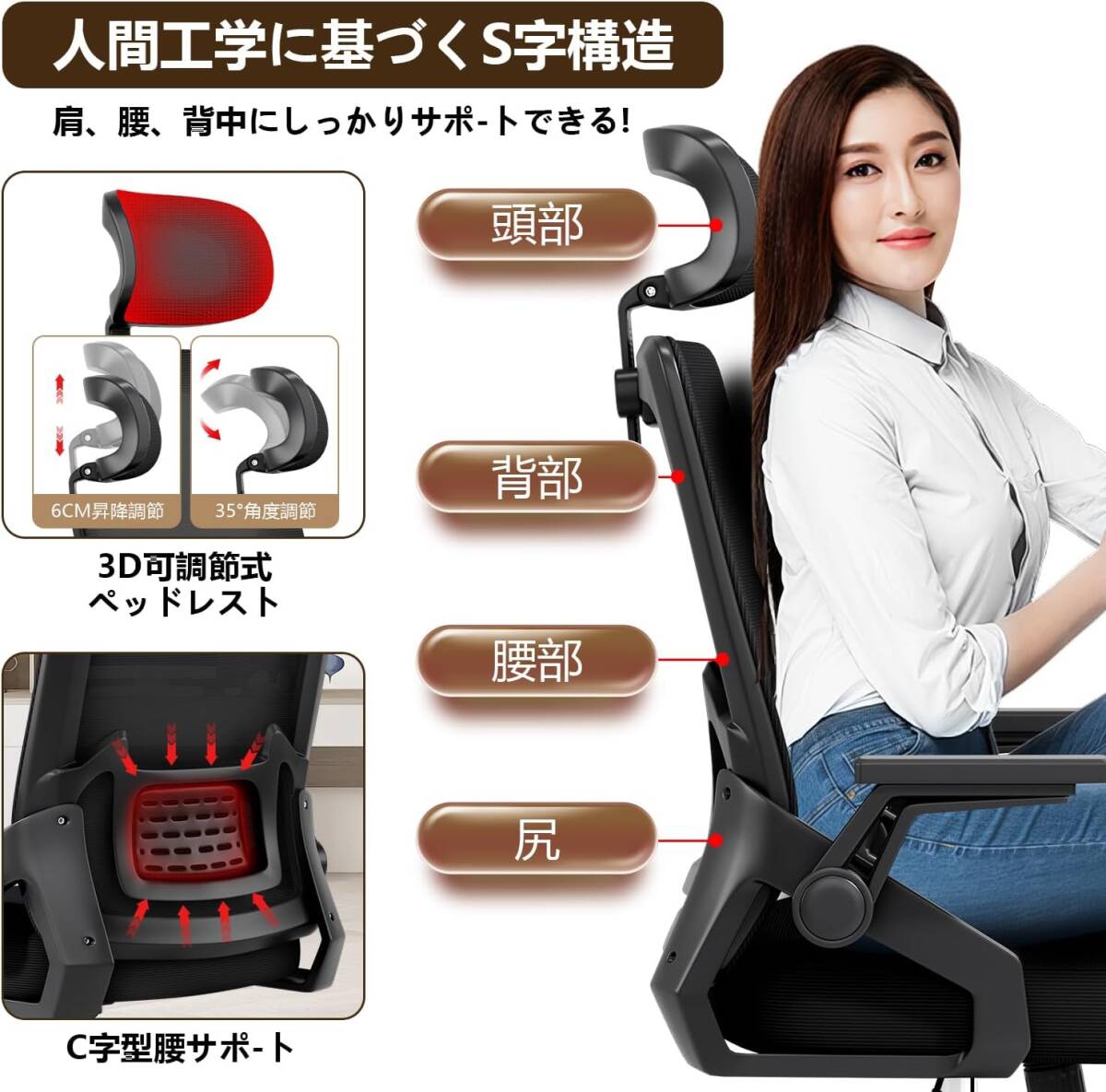 ブラック色 Dilosso オフィスチェア デスクチェア 腰サポートバー メッシュ通気性テレワーク チェア 疲れない 人間工学