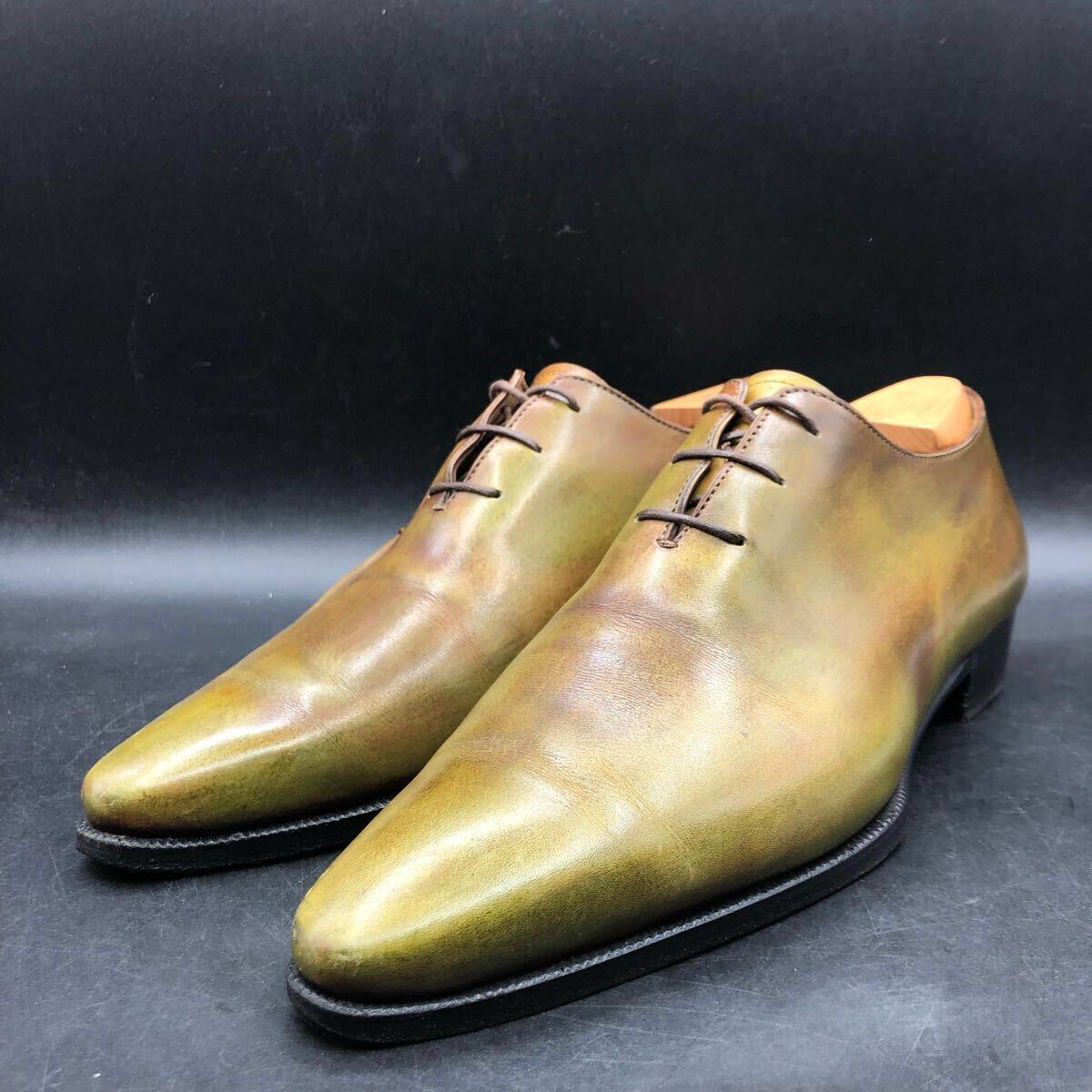 9M4641 ほぼ美品 Berluti ベルルッティ Piercing ピアッシング パティーヌ レースアップシューズ 6.5 グリーン系 オルガ期 ダンディズム