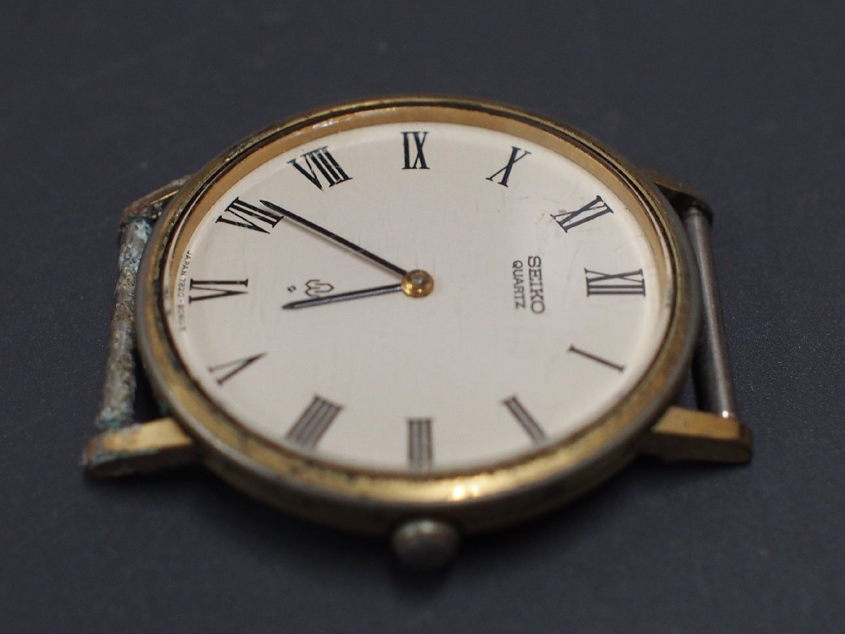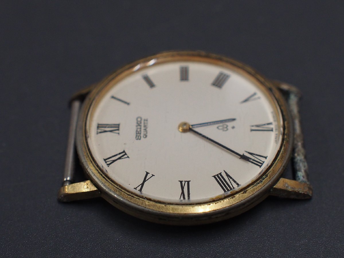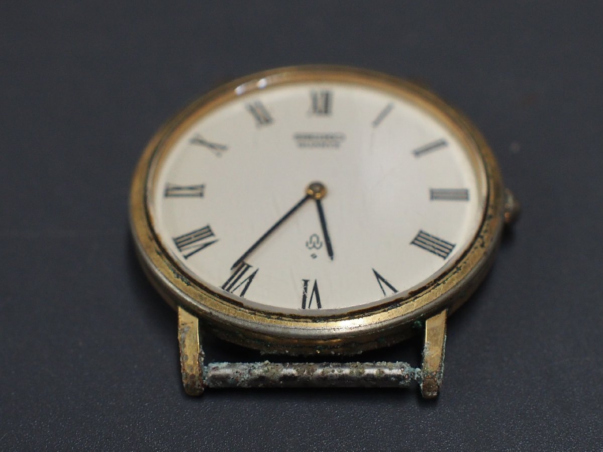 商品説明・コメント | アンティーク腕時計です。 現状、動作しておりませんので電池交換しても動作するかの保証は致しかねます 原則、オーバーホール・部品取り前提としてご考慮ください。 中古品の為、経年の修理の際に社外部品が使われている事もありますので全てオリジナルの保証は出来ません。 状態に尽きましては写真にて御確認頂けます様お願い致します。 写真掲載数の手前、写真では確認出来ない瑕疵が有る事もありますし全ての検品は出来ませんので御注意下さい。 新品同様のクオリティを求められる方や極端に神経質な方にはお勧め致しません。 中古品の性質上、原則として汚れ・割れ・欠品・社外補修・折れ・変形・加水分解・傷・オイル切れ・劣化・動作不良等の機能的な欠陥等々が有る前提でのジャンク扱い、補修ベース、部品取りのノークレーム、ノーリターンでの認識にてご検討下さい。 原則として、契約不適合事項についての責任は負いかねますので御了承下さいます様御願い致します。 店頭と併売になりますので稀にネット購入頂きましても店頭で売れてしまっている場合も御座いますので御了承下さいませ。 上記の条件を御理解頂けない方の購入はお断り致します。 |