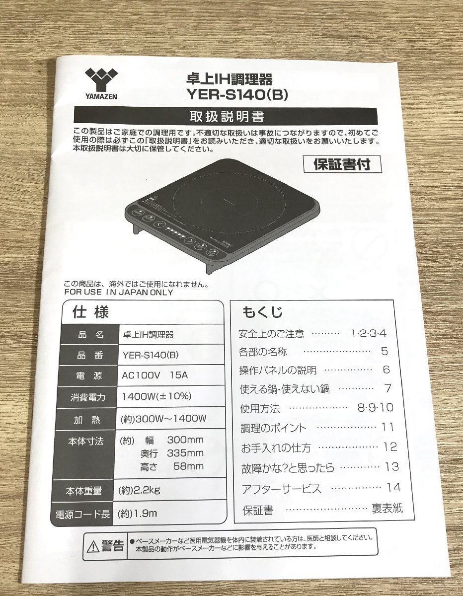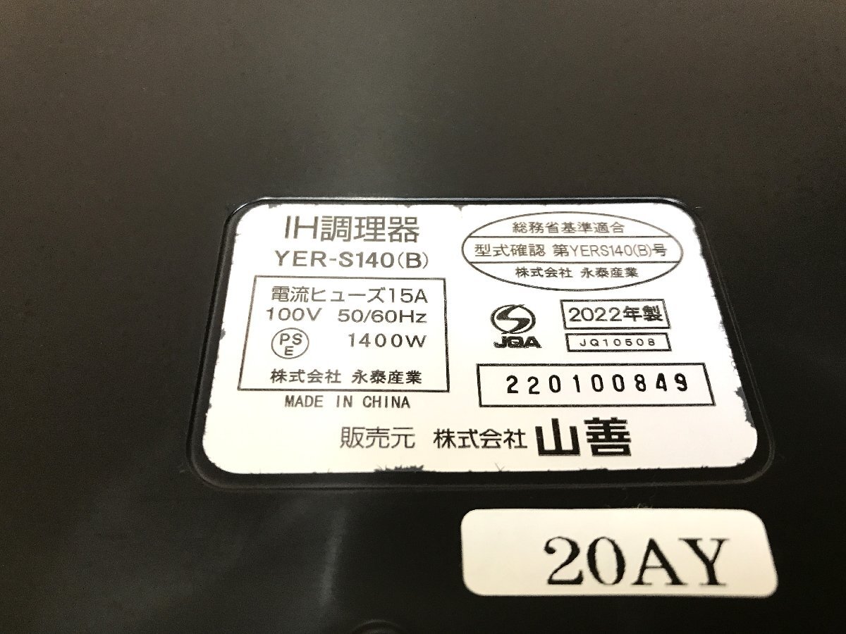 【中古】YAMAZEN 山善 IH調理器 YER-S140 黒 2022年製 動作確認済 一口 IHヒーター 調理家電