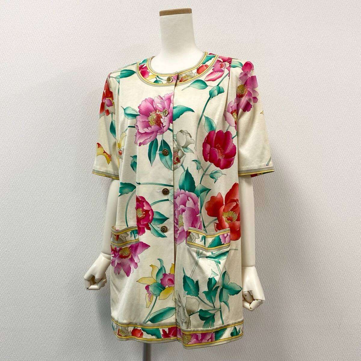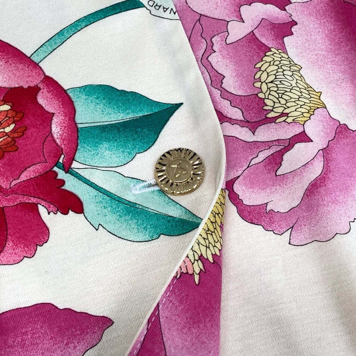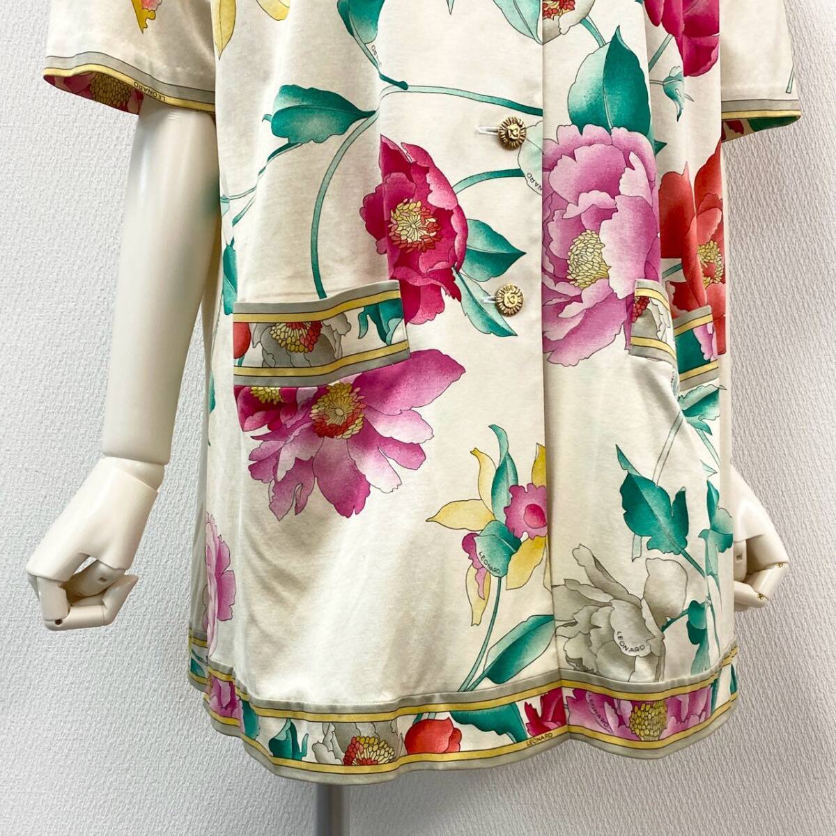 スタッフ商品コメント | レオナールらしい華やかなフラワープリントが目を惹く半袖チュニックです。アイボリーをベースに、ピンク・レッド・イエローの大輪の花柄が映えるデザインで、コットン素材のやわらかな風合いが特徴です。ゴールド調のボタンや縁取りのパイピングが上品さをプラスし、日常使いからリゾートやお出かけシーンまで幅広く活躍します。1枚で主役になる華やかさがあり、パンツやレギンスとの相性も抜群です。 |