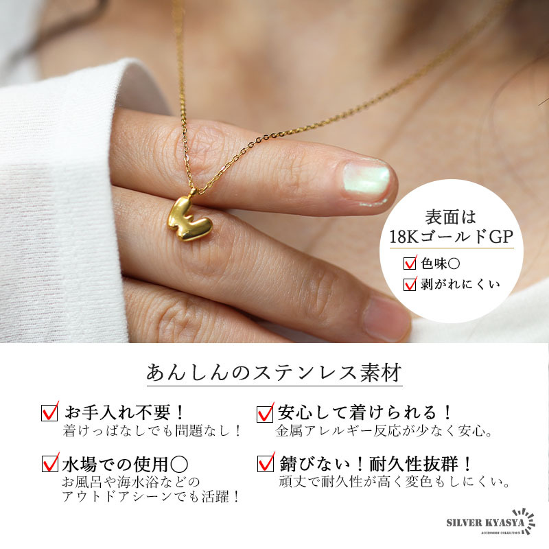 ぷっくりとしたフォルムが可愛いイニシャルネックレス。細身のチェーンで華奢な女性らしさを演出してくれます。自分へのご褒美や、大切な人への贈り物にもおすすめの一品。